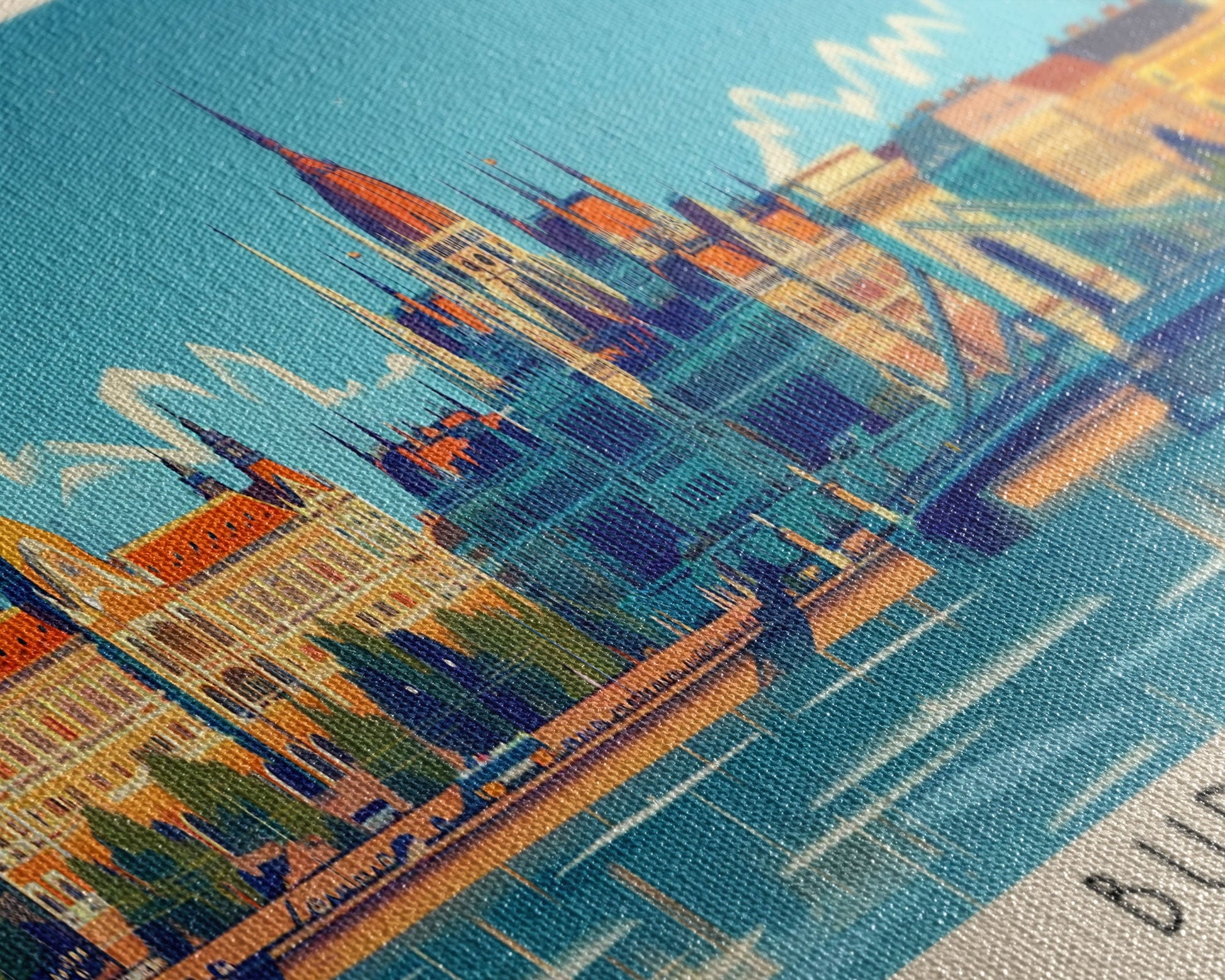 Budapest Hungary Travel Art, City Art, Framed Canvas Print or Metal Wall Art, Europe Travel Poster, Panoramic Wall Art, Extra Wide Wall Art