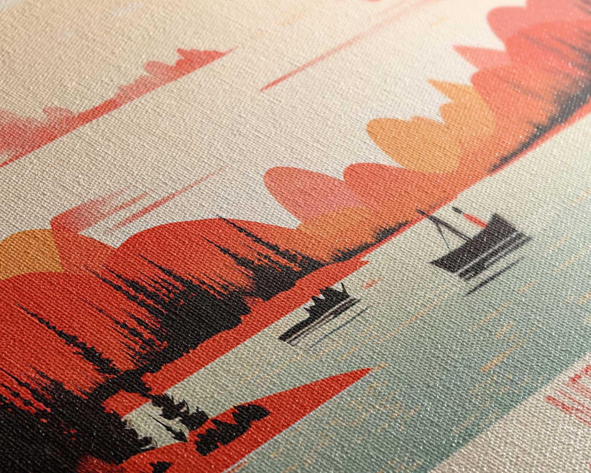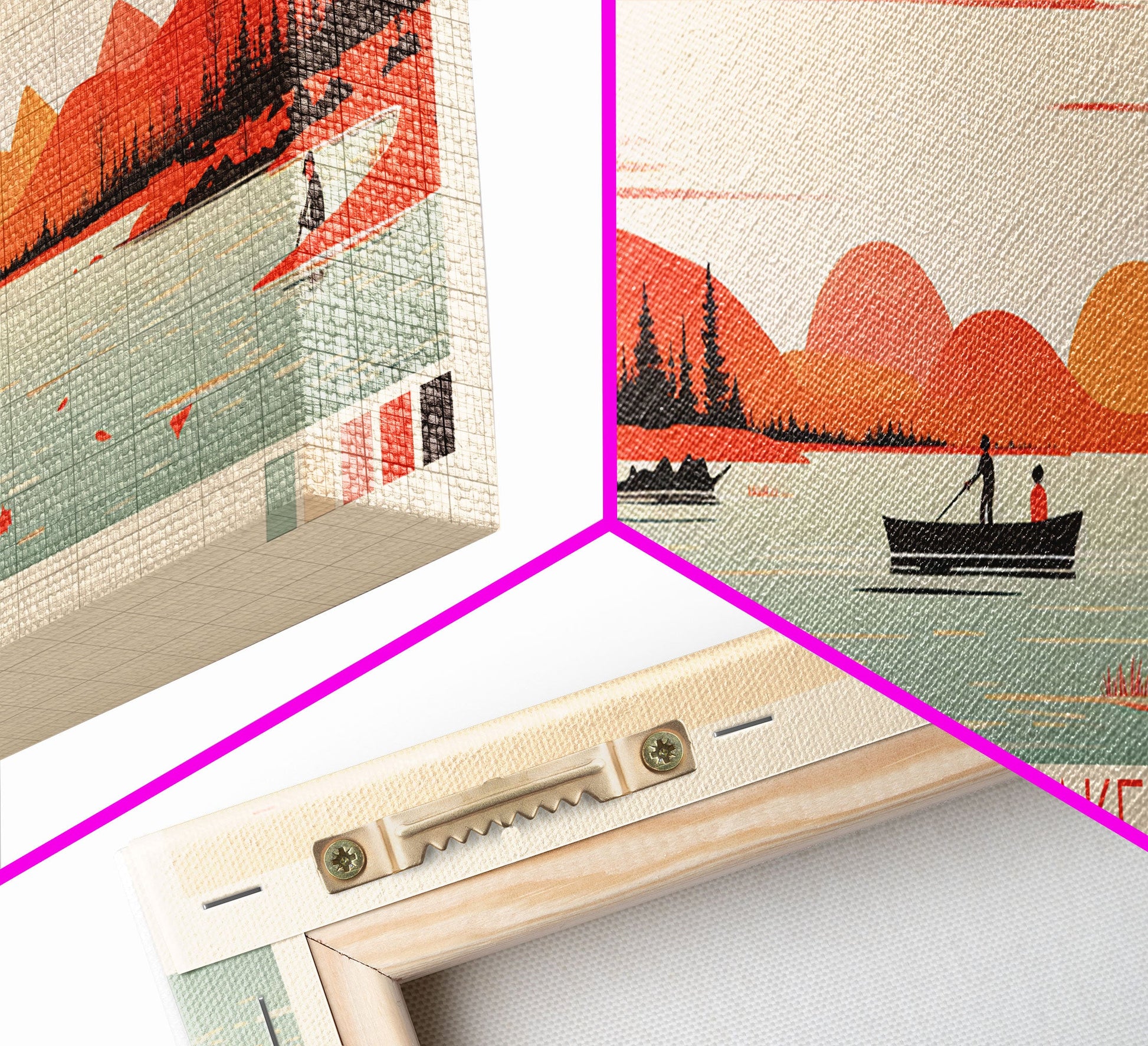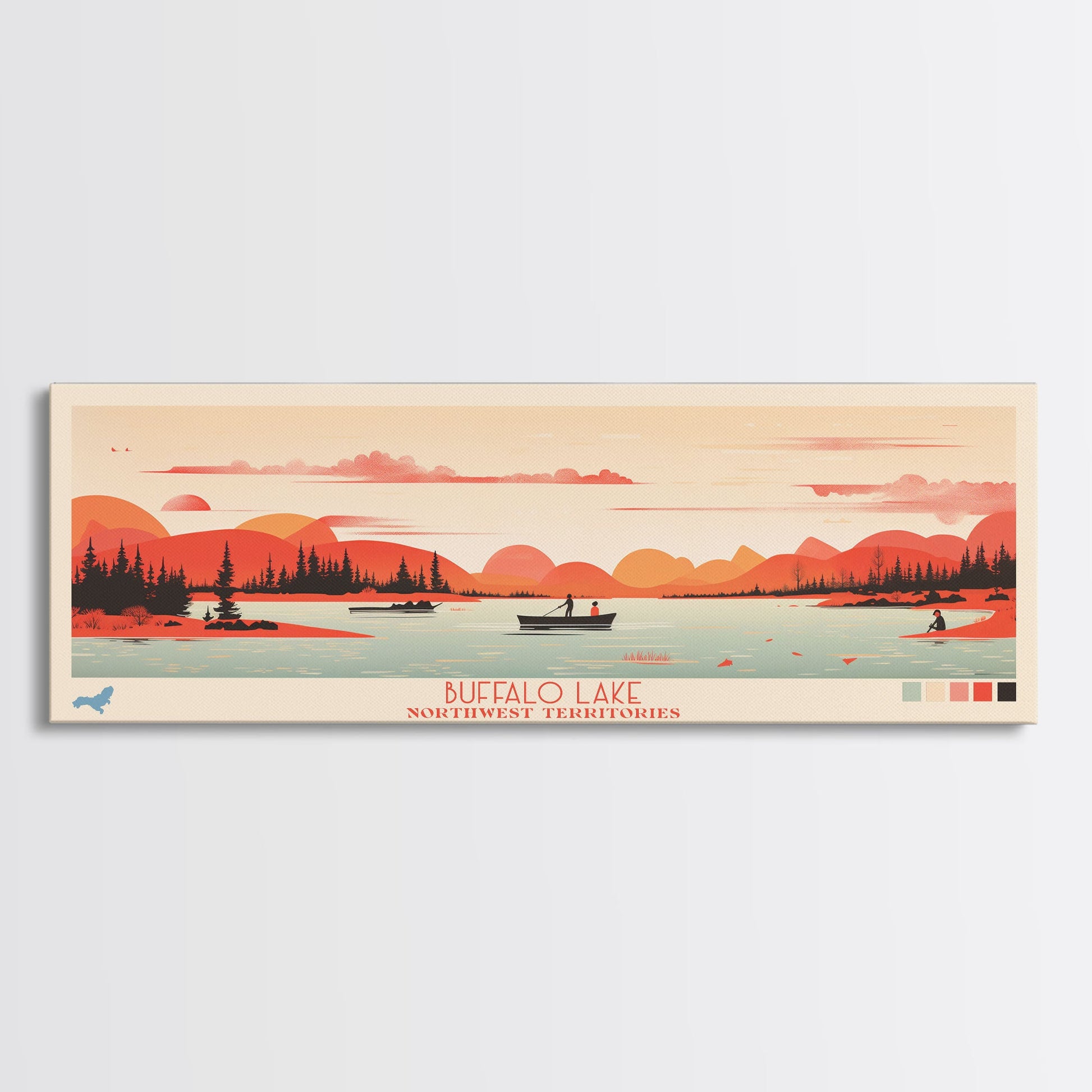 Buffalo Lake Northwest Territories Framed Canvas Print, Pop Art Panoramic Travel Poster, Midcentury Modern, Wall Art, Scenic Nature Painting, Bedroom Decor