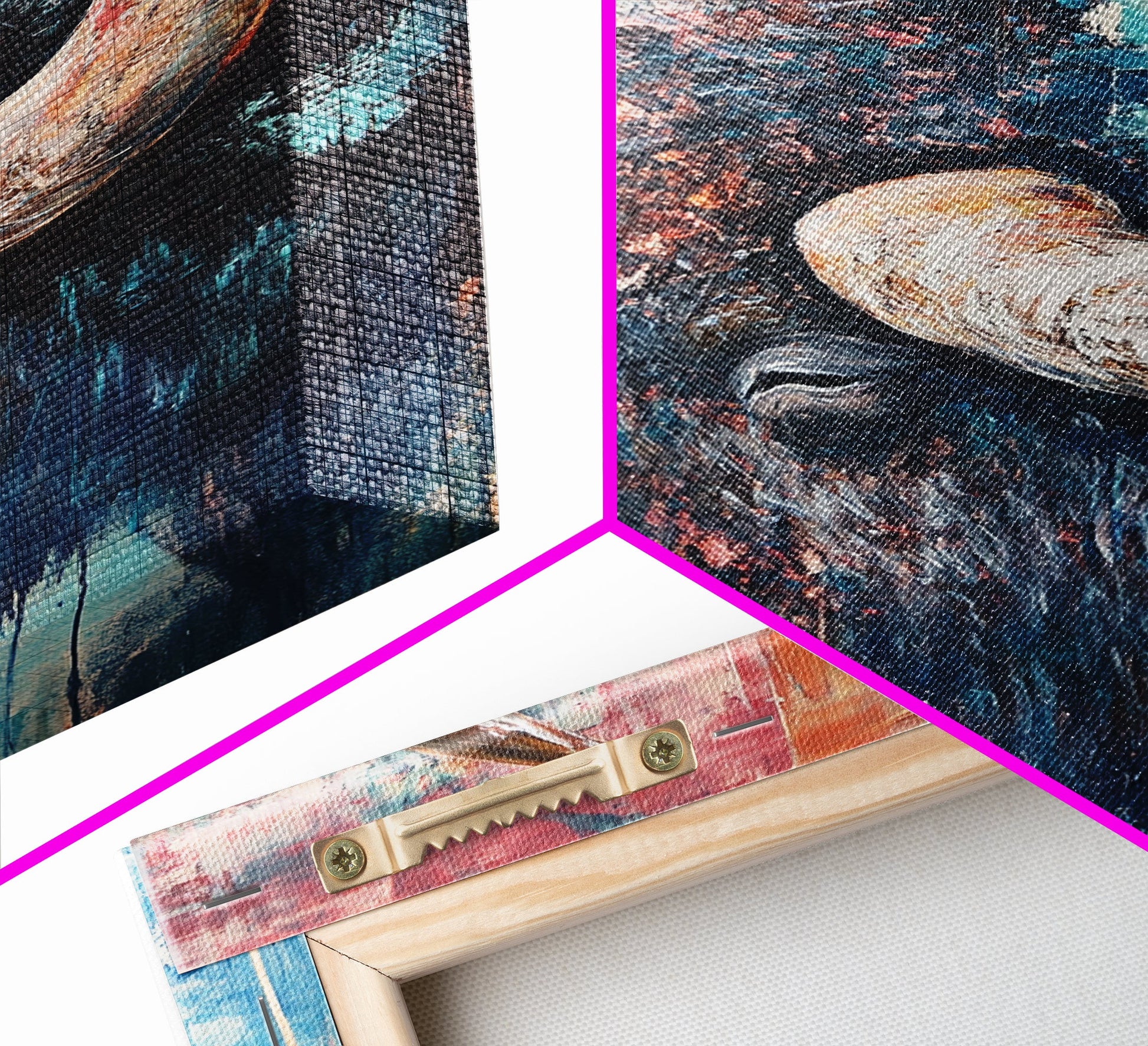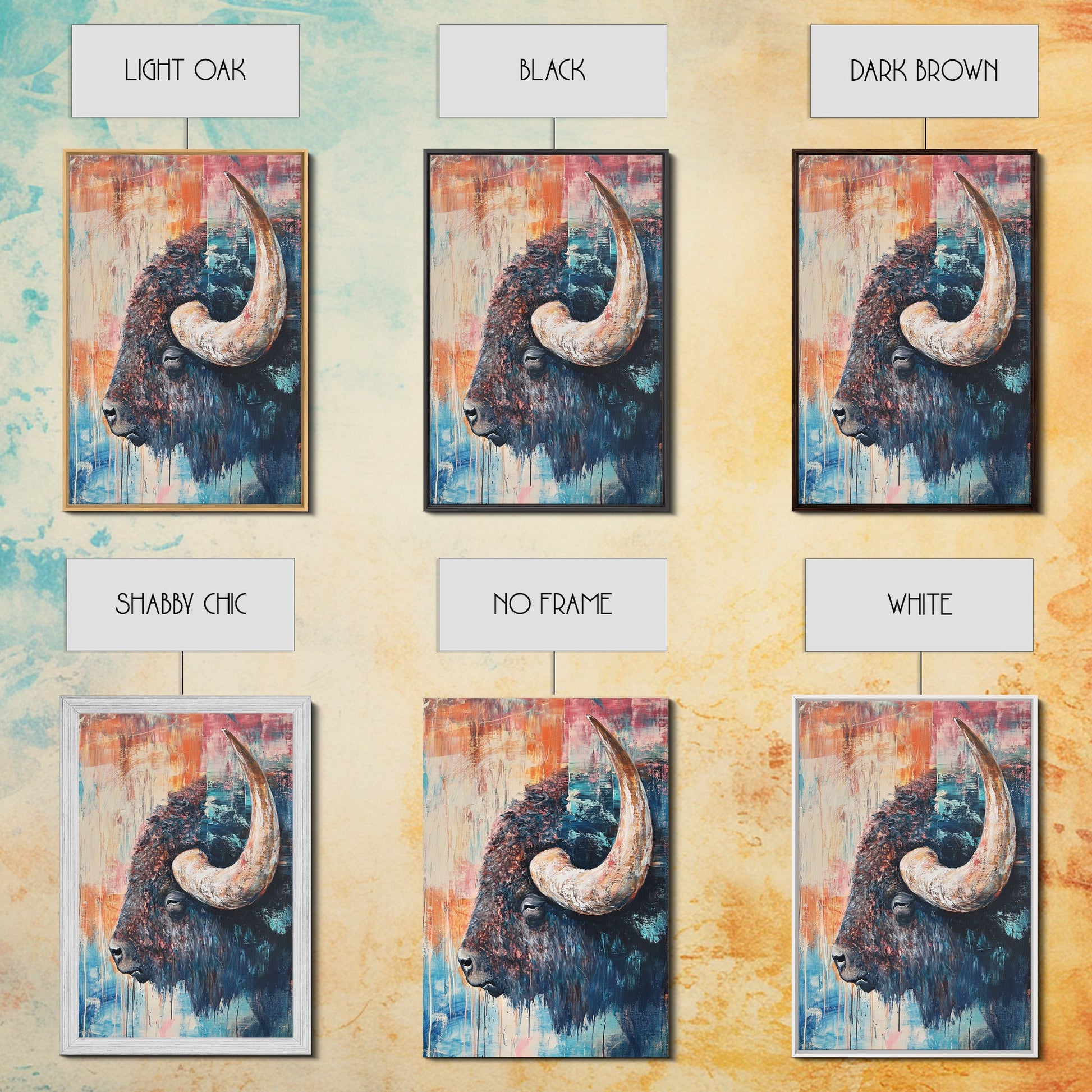 Buffalo Painting, Bull and Bear Art, Western Wall Art, Rustic Art, Farmhouse Art, Living Room Art, Canvas Print, Gift Idea