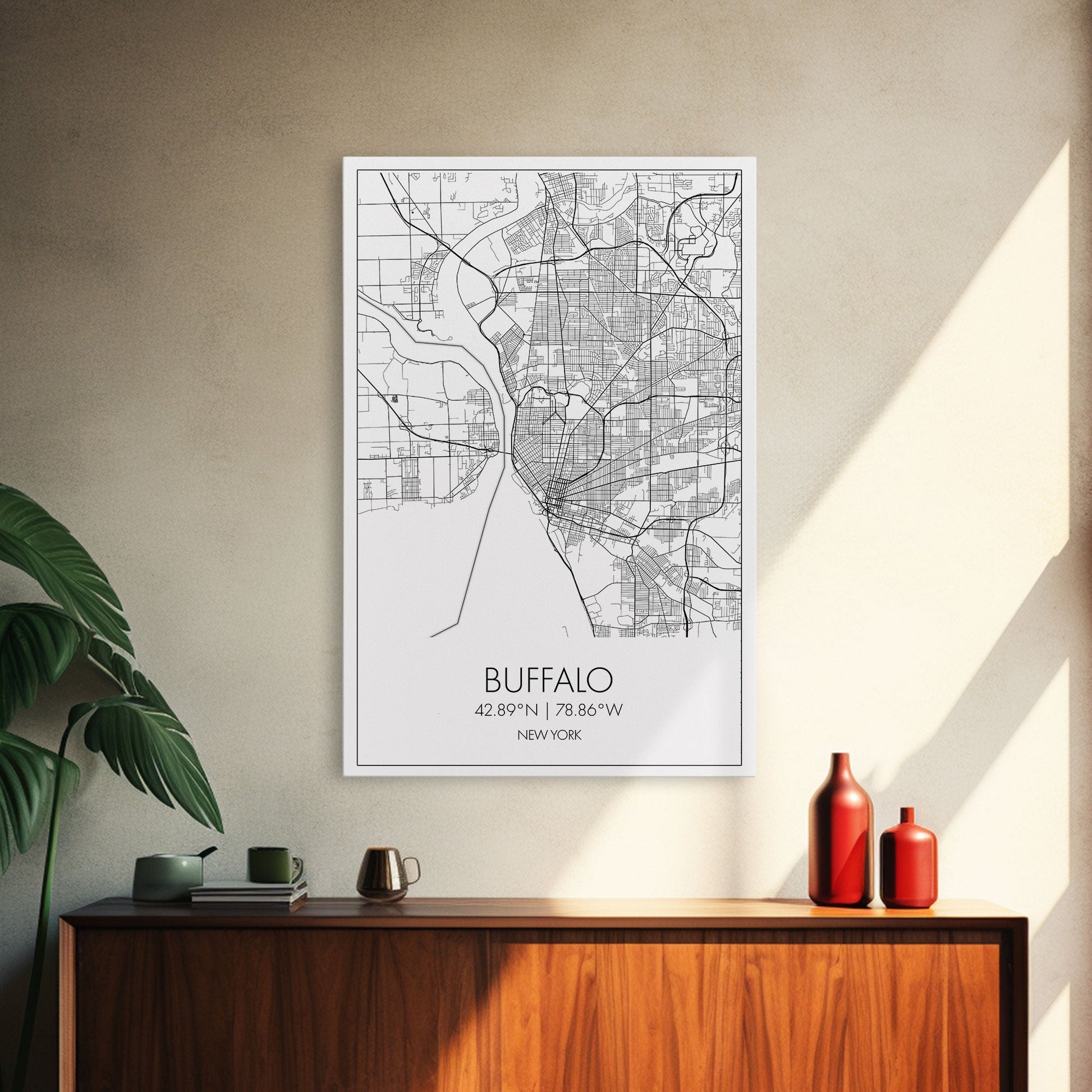Buffalo Street Map, New York Map, City Map Art, Modern Art, Wall Art, Canvas Print, Canvas Wall Art, Wedding Gift, Home Office Wall Art