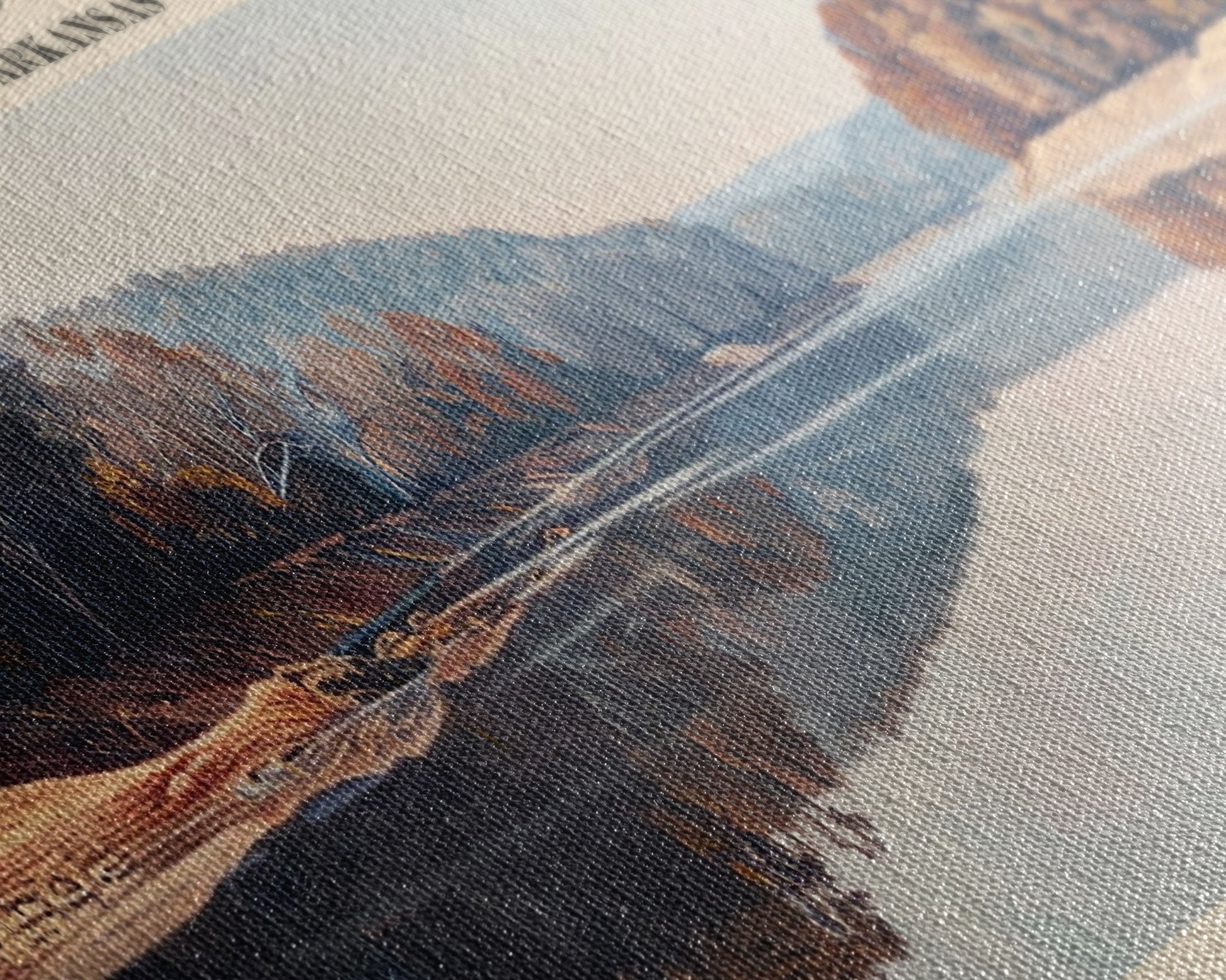 Bull Shoals Lake Arkansas Framed Canvas Print, Lake House Art, Panoramic Wall Art, Travel Poster, Rustic Lake Painting, Home Decor