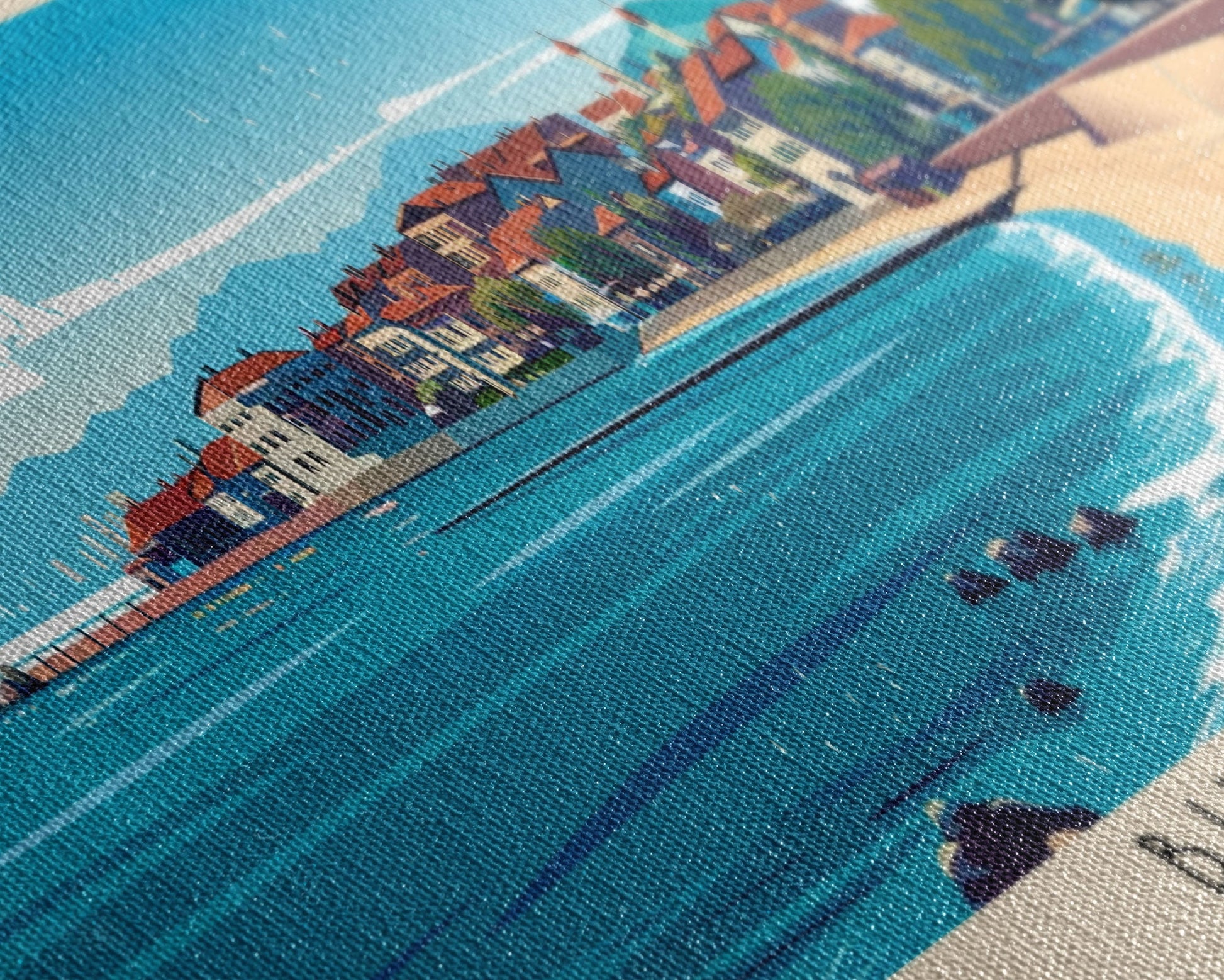 Burgas Bulgaria Panoramic Travel Poster, Framed Canvas Print or Metal Wall Art, Travel Art, Home Decor, Panoramic Painting, Midcentury Art