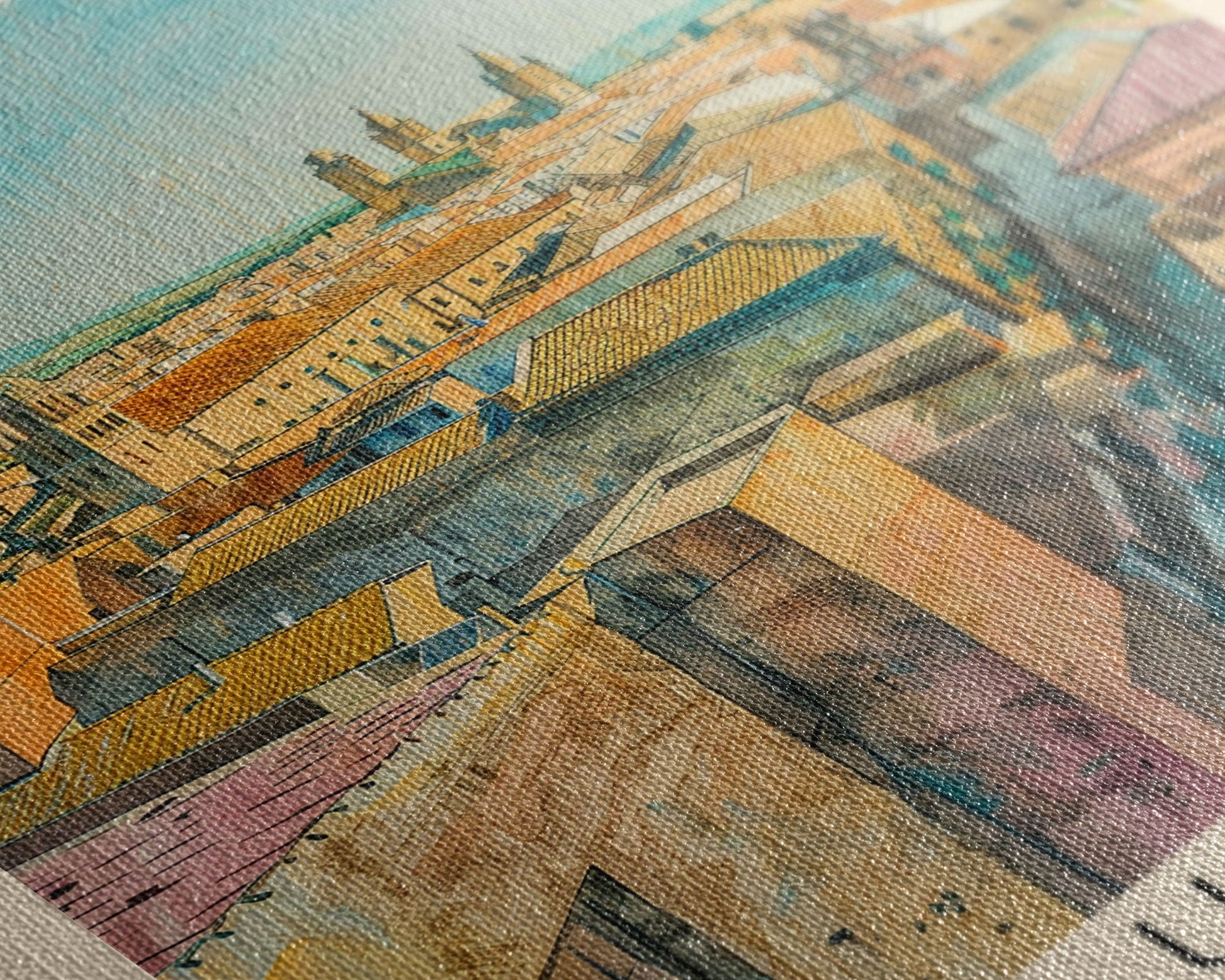 Burgos Spain Travel Poster Framed Canvas Print, Watercolor Cityscape, Wall Art, Home Decor, Living Room Art, Travel Print, Boho Style, Art Piece