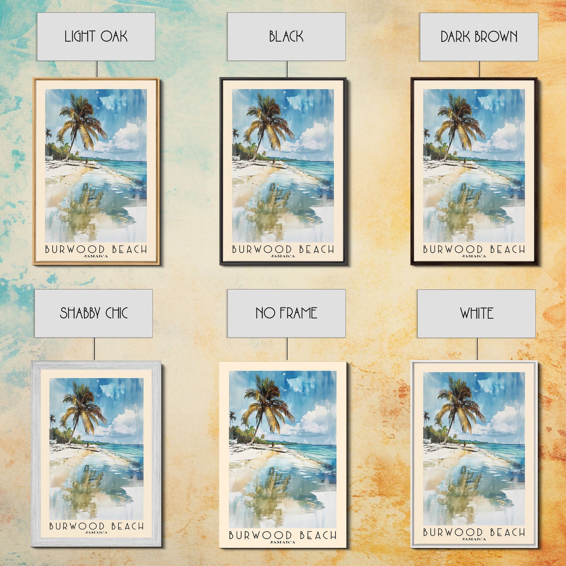 Burwood Beach, Jamaica Watercolor Beach Print, Vacation Gift, Jamaica Wall Art, Framed Canvas Print, Framed Beach Painting