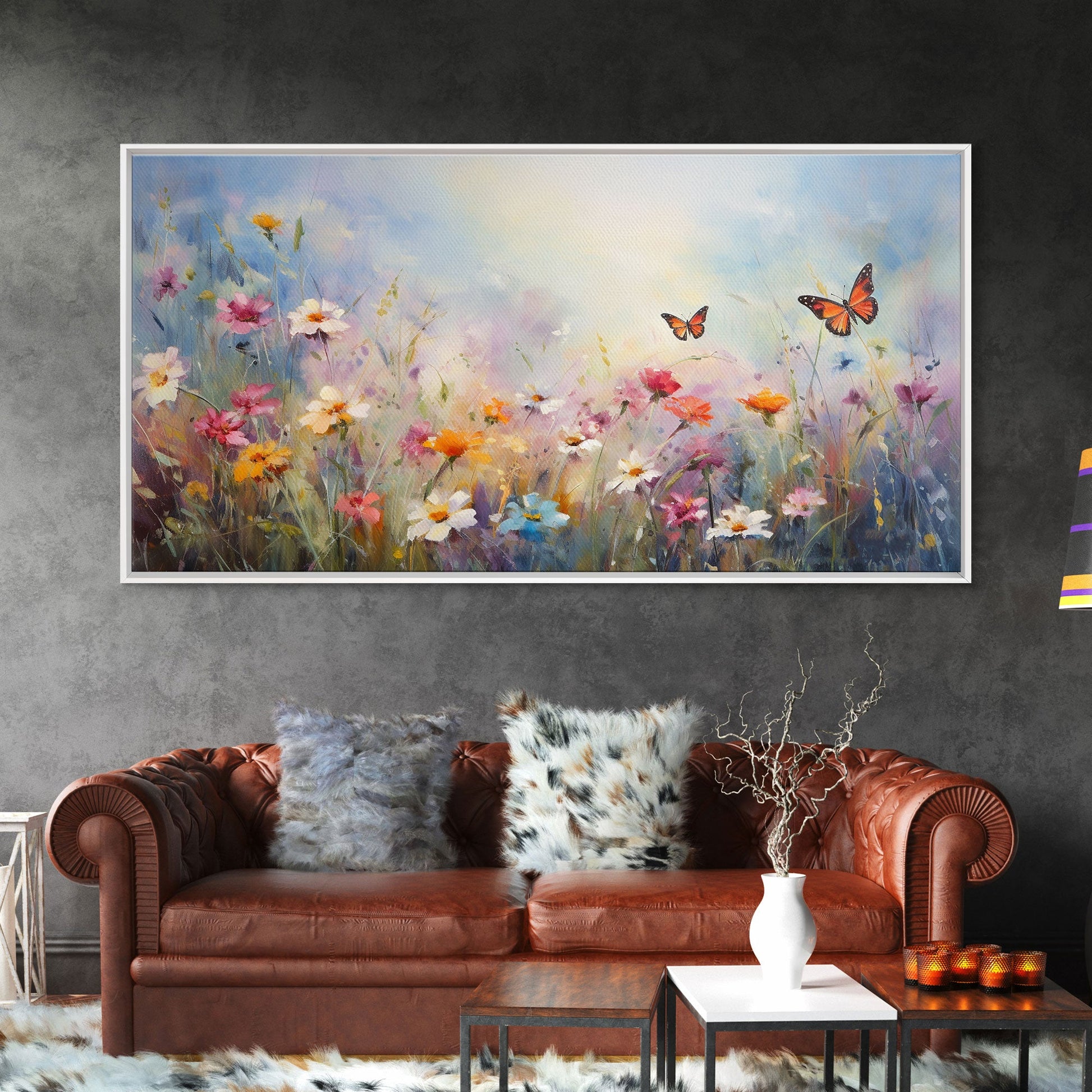 Butterflies Wall Art, Wildflower Meadow, Panoramic Art, Wall Art, Canvas Art, Landscape Art, Spring Meadow Print, Wife Gift, Boho Wall Art
