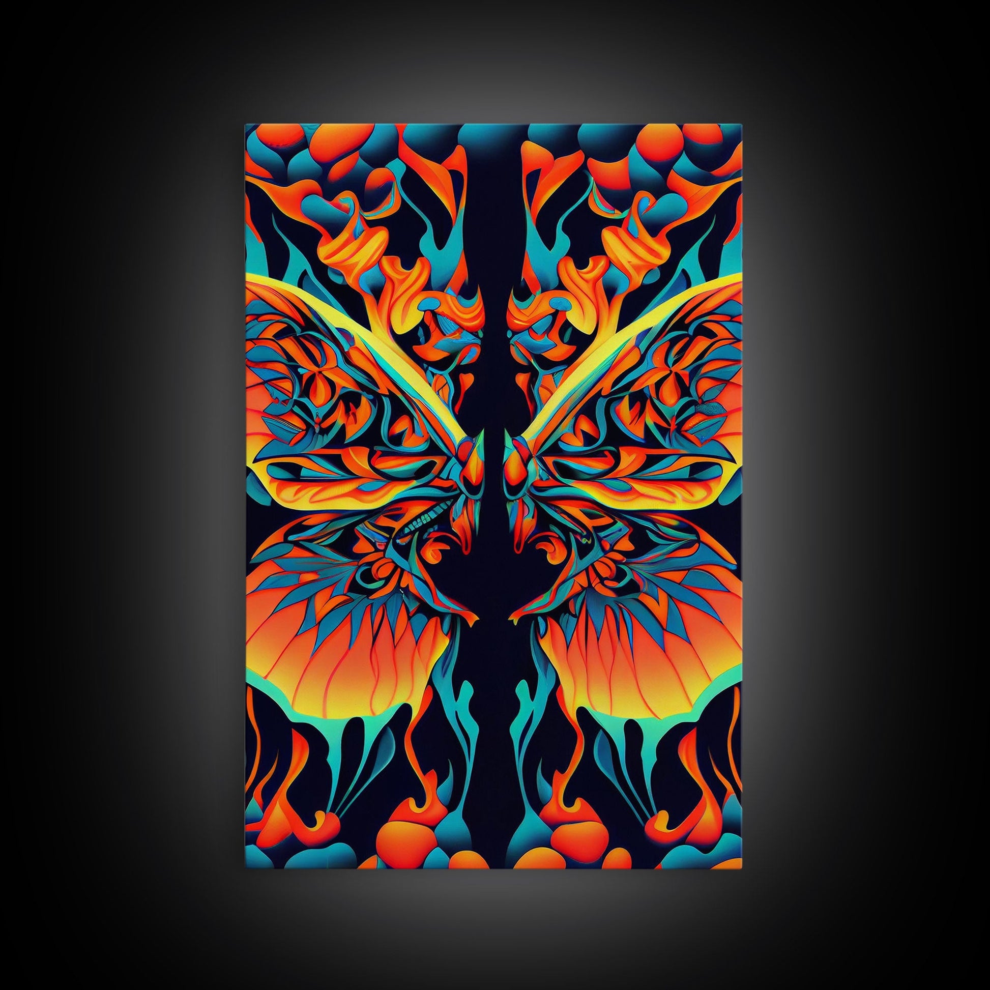 Butterfly Fire Rorschach Art, Dual Meaning, Framed Canvas Print, Optical Illusion Art