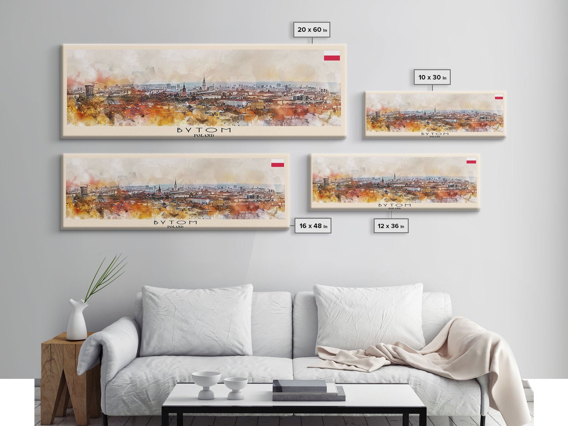 Bytom Poland Panoramic Travel Poster, Framed Canvas Print or Metal Wall Art, Travel Art, Home Decor, Panoramic Painting, Midcentury Art