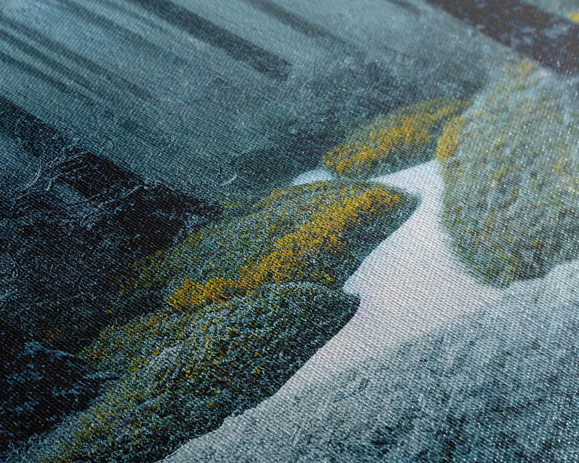 Most of our canvases are made in the USA, with the exception of canvases ordered with the light oak unstained frames, and any large canvases (24x48, 30x60, 16x48 and 20x60) ordered WITH a frame. These are temporarily made in and shipped from Europe, while we try to find a more consistent supplier in the USA.