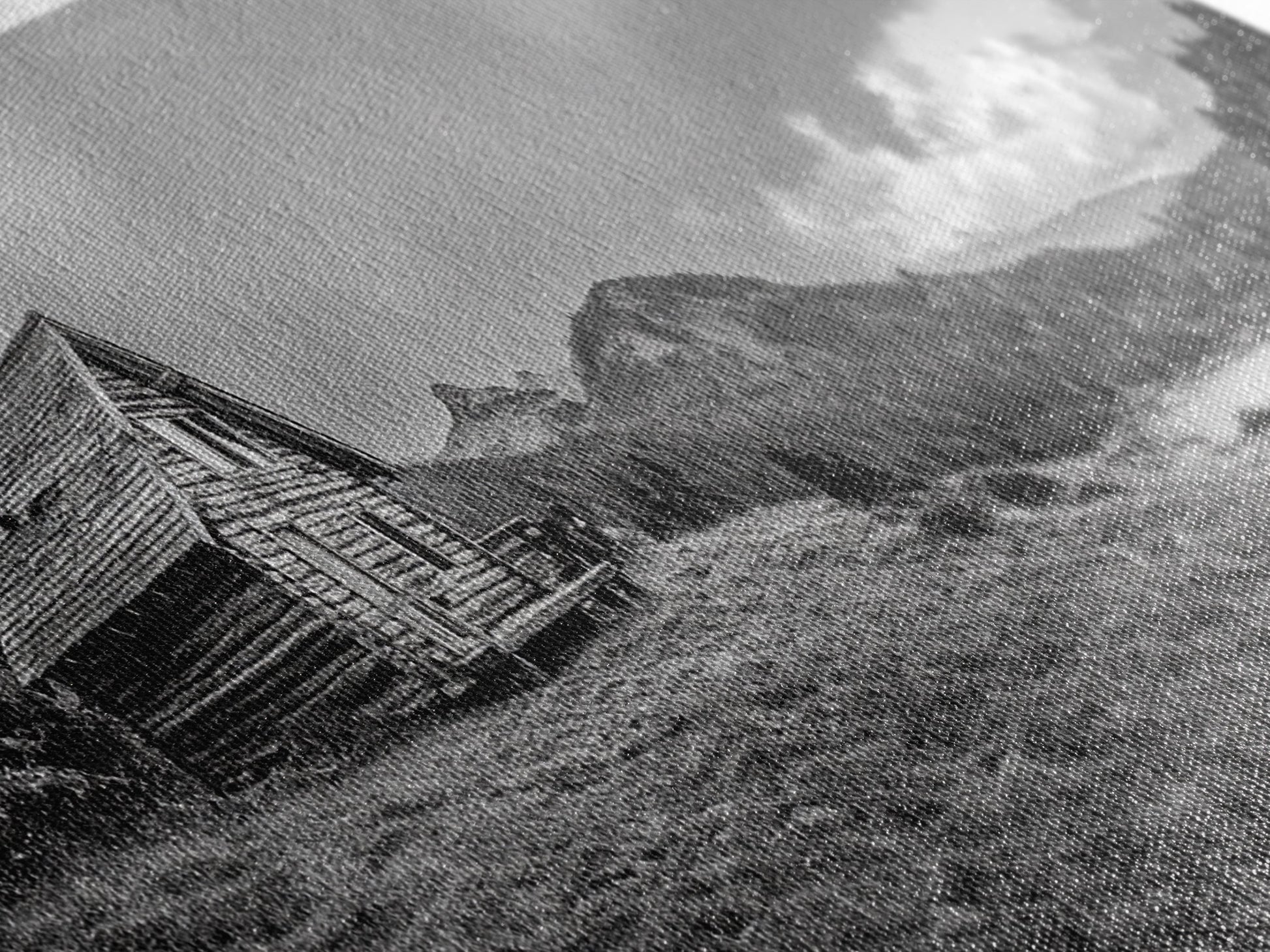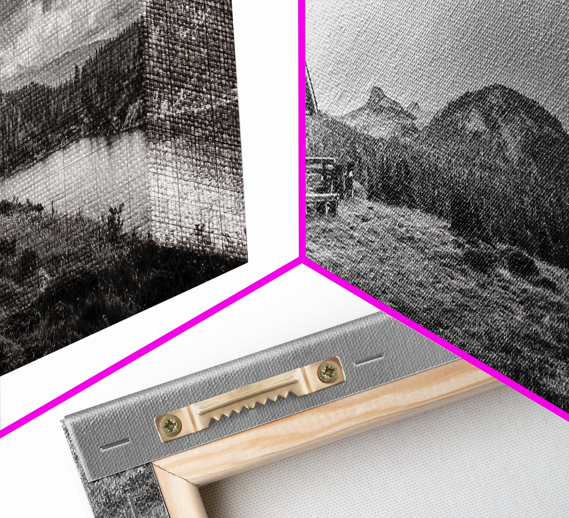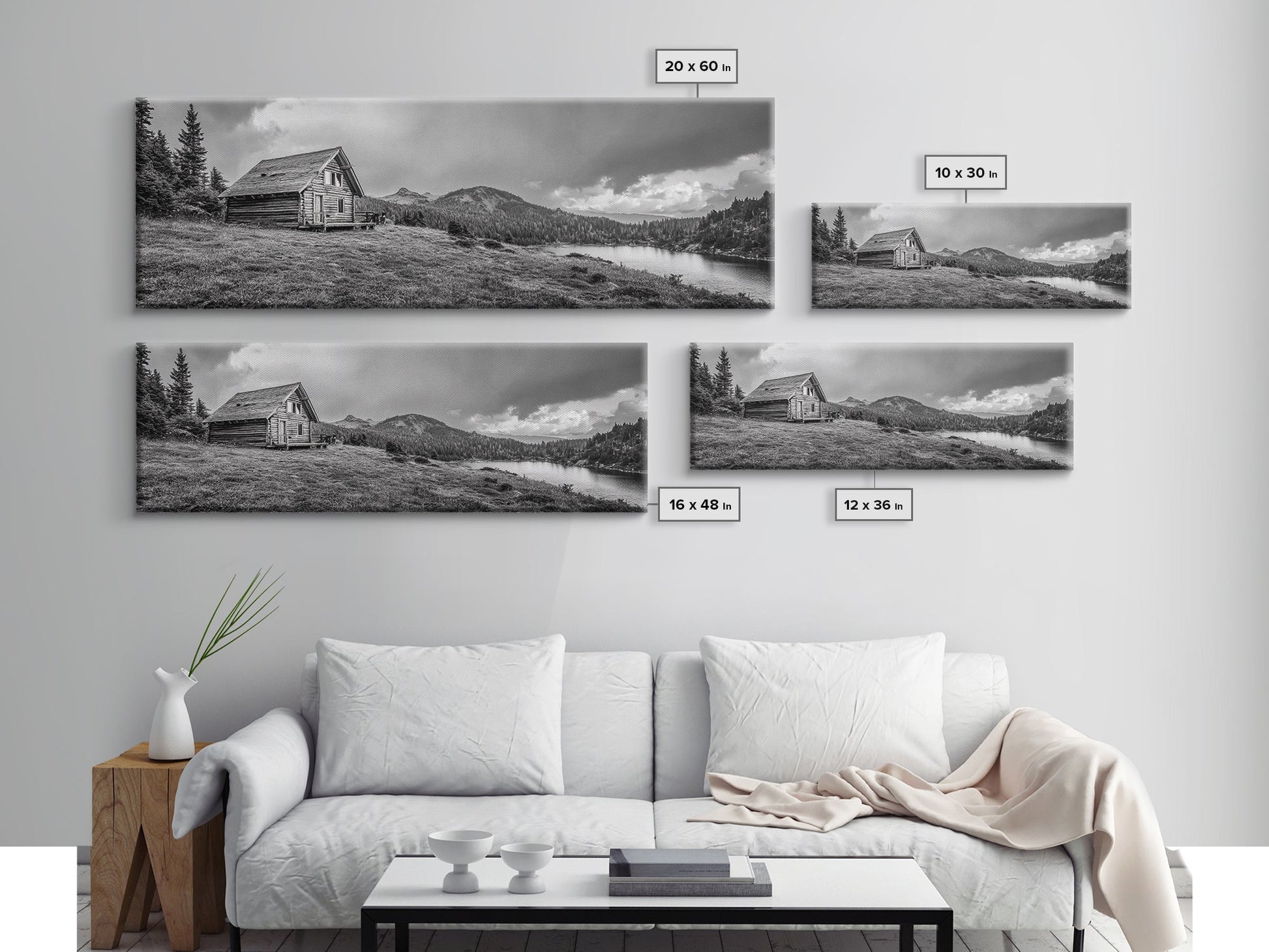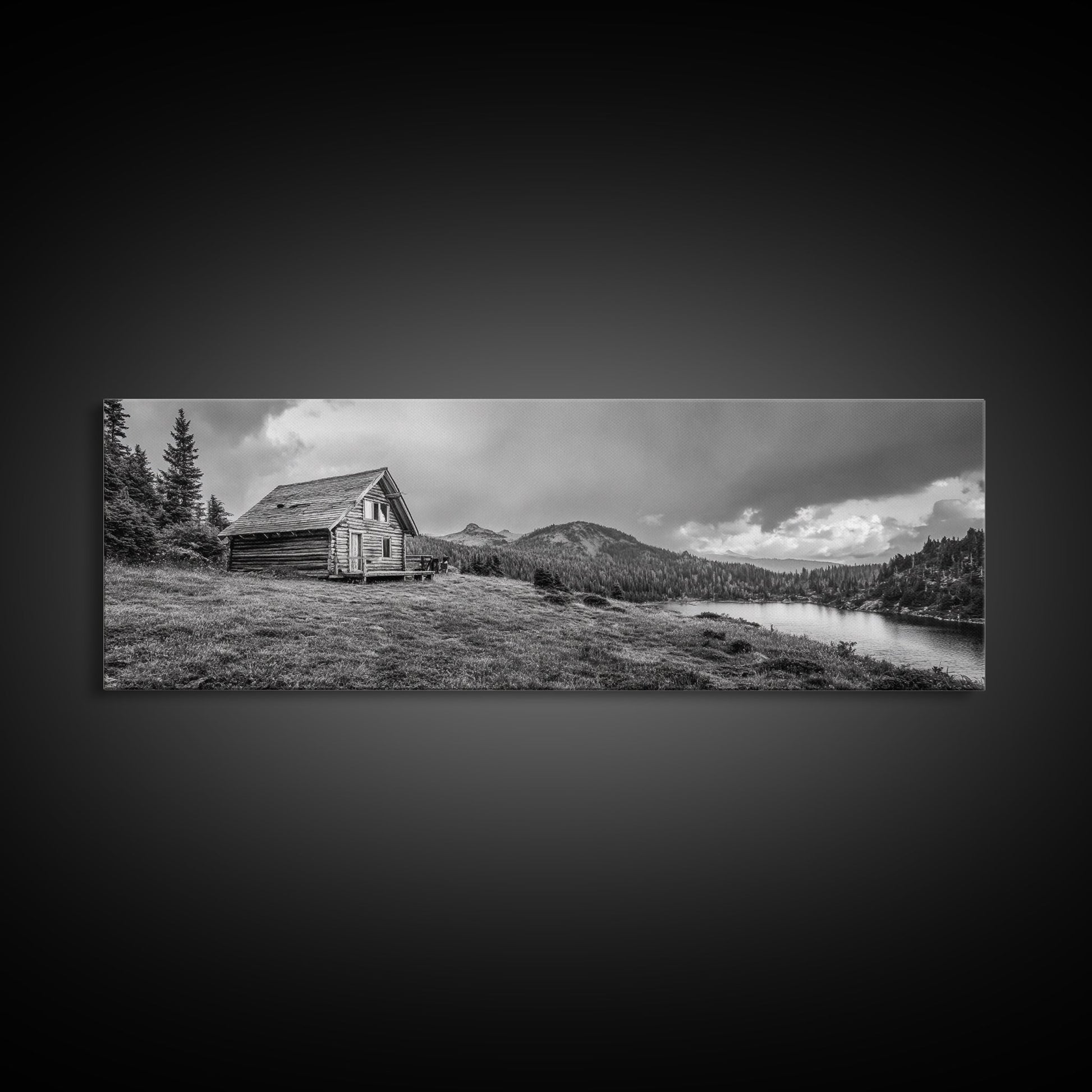 Cabin On Hill, Mountain Lake, Rustic Retreat, Canvas Print, Fall Wall Art, Cozy Home Decor, Adventure Landscape, Nature-Inspired Design