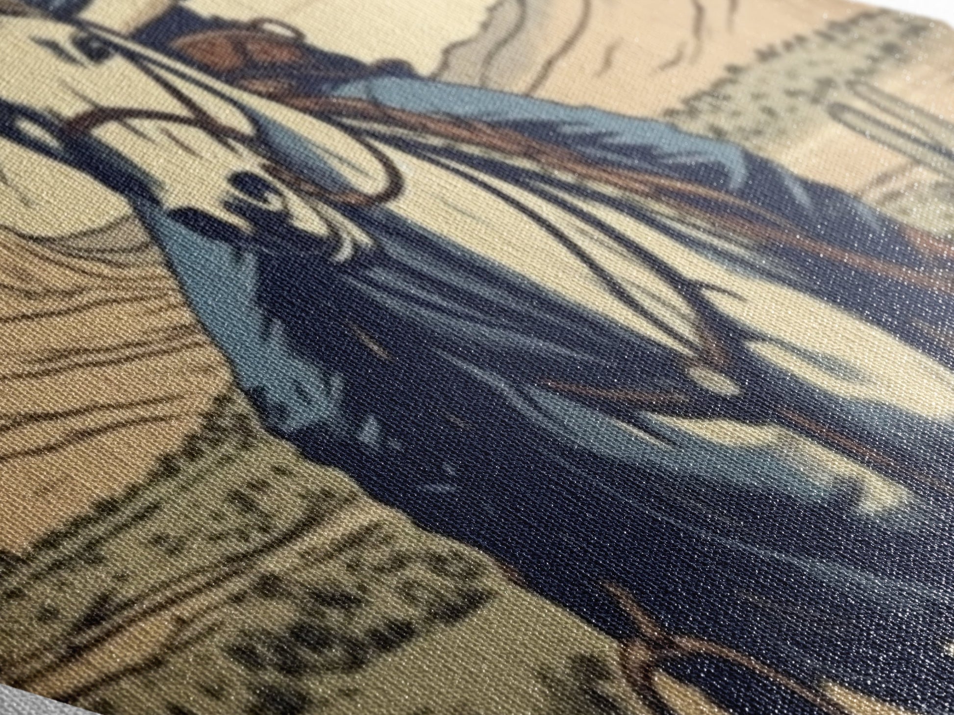Most of our canvases are made in the USA, with the exception of canvases ordered with the light oak unstained frames, and any large canvases (24x48, 30x60, 16x48 and 20x60) ordered WITH a frame. These are temporarily made in and shipped from Europe, while we try to find a more consistent supplier in the USA.