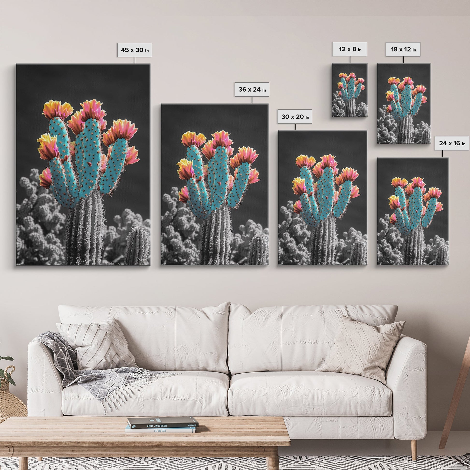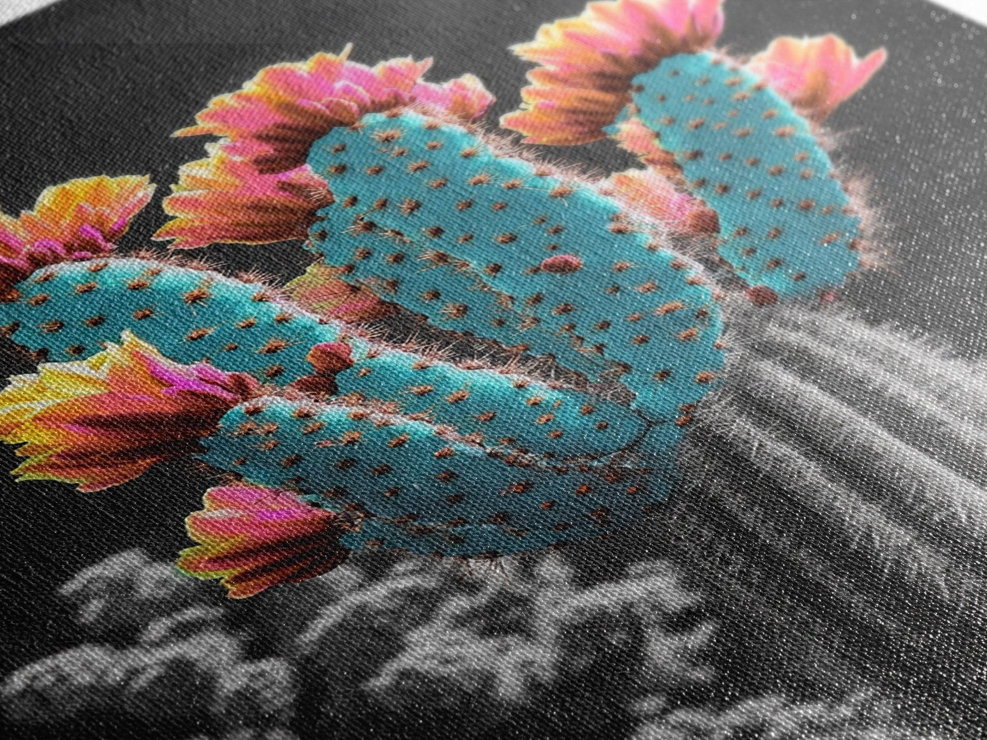 Cactus, desert flowers, vibrant nature art, framed canvas print, boho wall decor, southwest wall art, floral painting, Joshua tree art