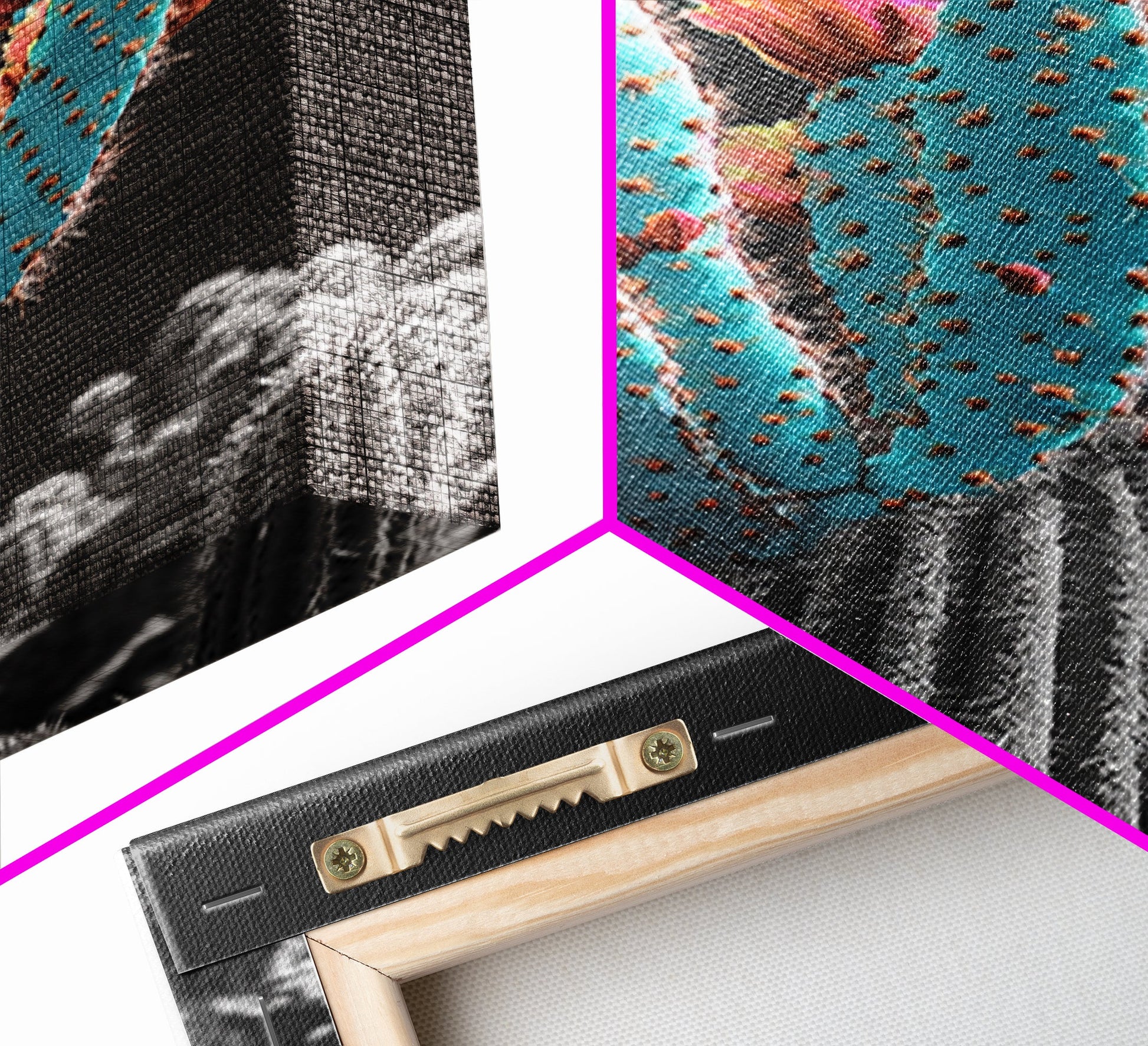 *SHIPPING: Every canvas is carefully wrapped in bubble wrap and foam corner protectors, and shipped fully assembled and ready to hang with sawtooth hangers in a flat box. All you need is a hammer!
