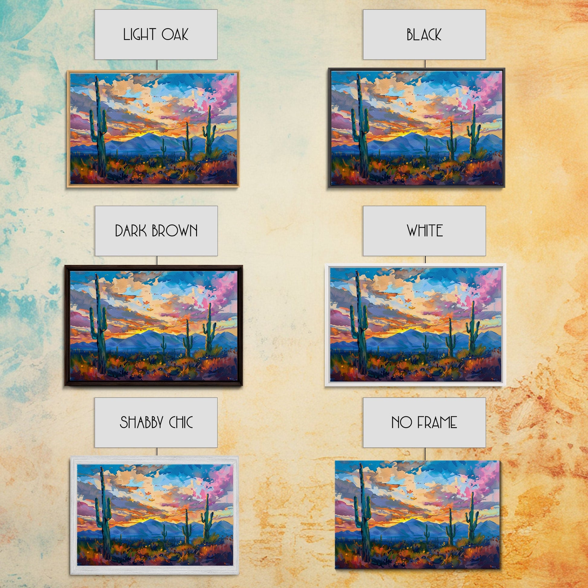 Cactus Under A Beautiful Sunset, Pop Art Style, Mid Century Modern Framed Canvas Print or Metal Art, Desert Scene Wall Art, Abstract Desert