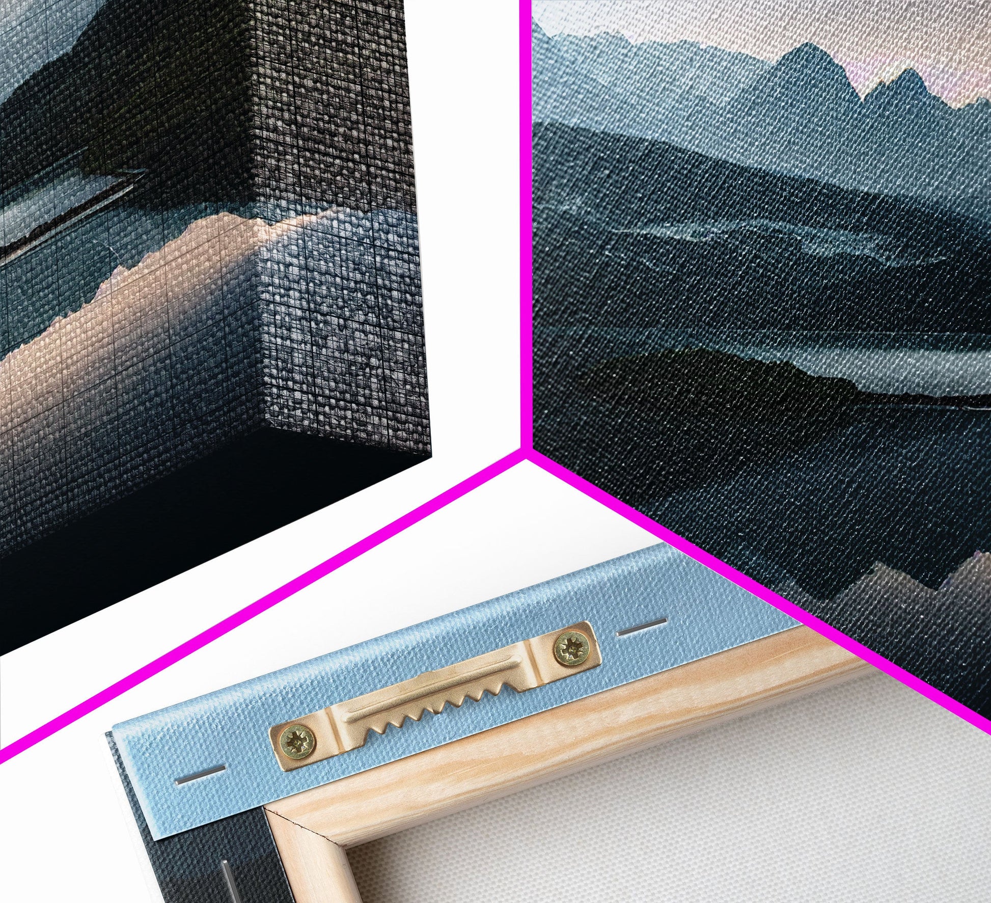 Calm Reflection Of A Lake and Mountains, ready to hang canvas print wall art, Lakehouse Cabin Wall Decor