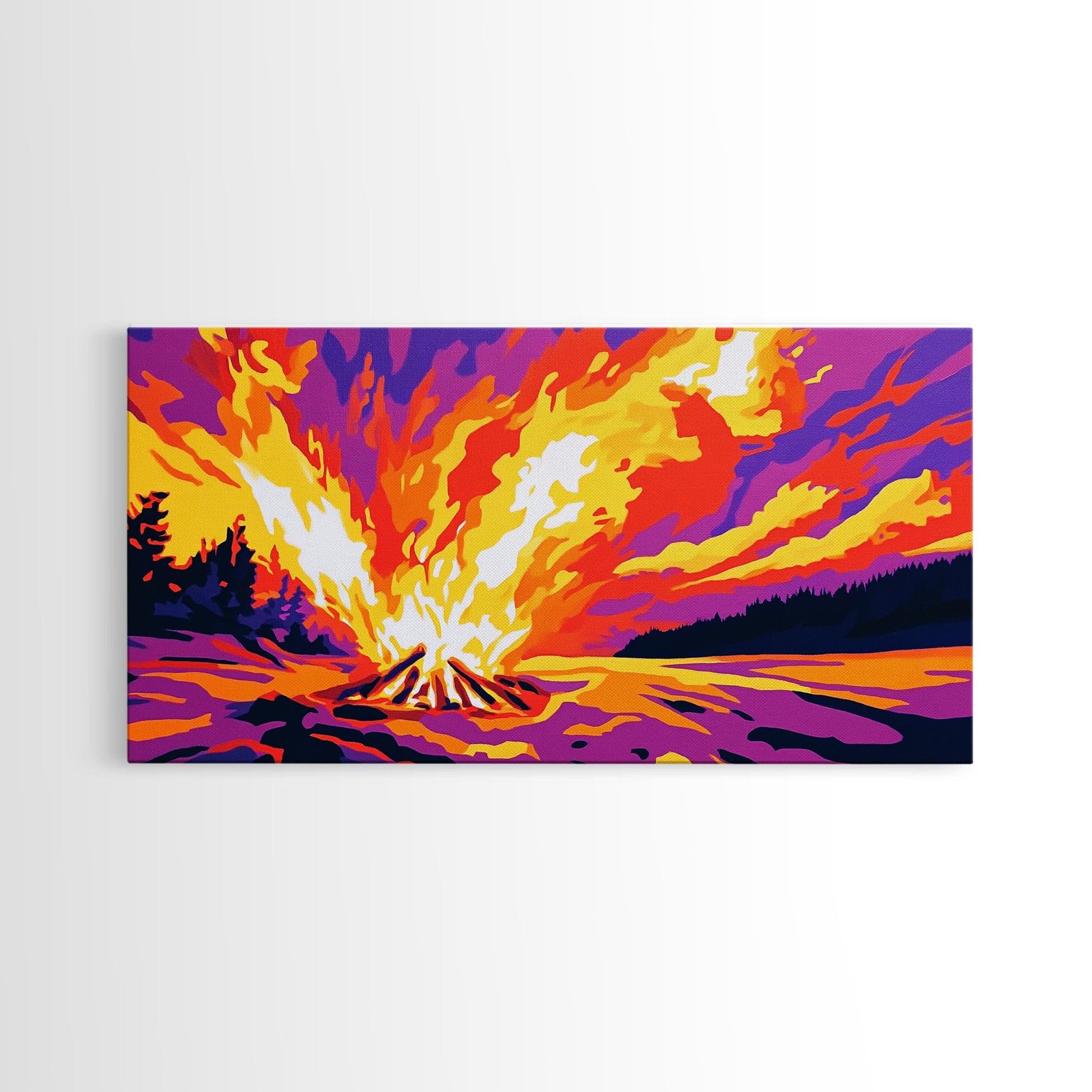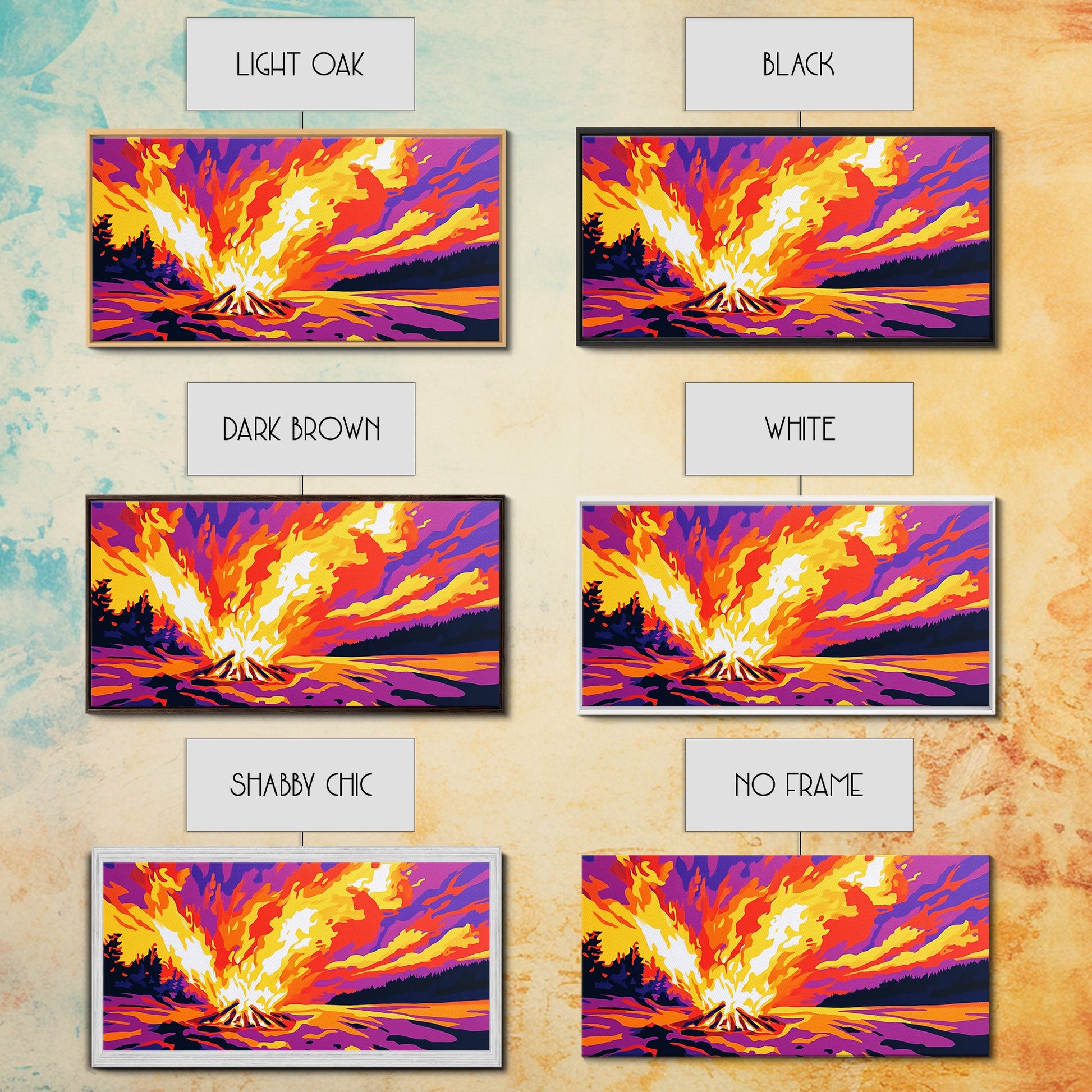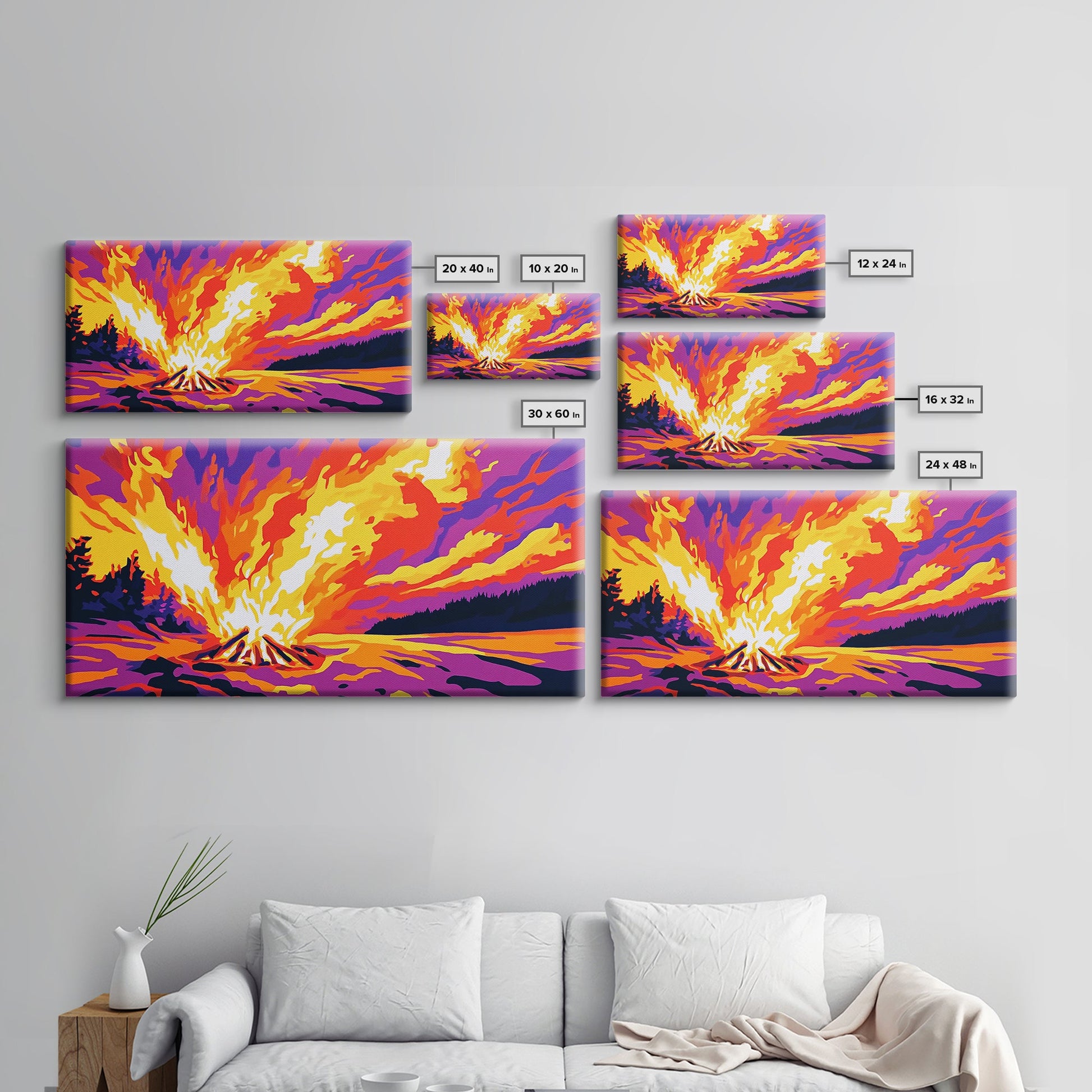 Campfire Blaze, Night Sky Glow, Framed Canvas Print, Cozy Cabin Wall Art, Rustic Living Room, Adventure Decor, Warm Autumn Colors