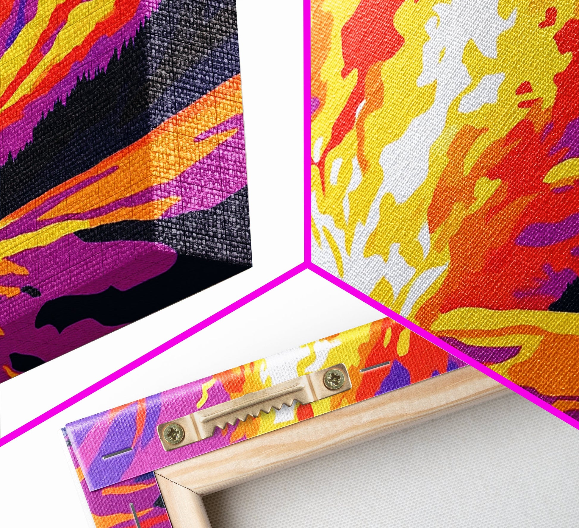 Hello and thank you for taking the time to view our modern high quality giclée artwork! We offer both posters and stretched canvas prints. Our posters are printed on Ultra Matte 60 lb / 230 GSM high quality photo paper, with a thickness of 10 mil. Our canvases are printed on museum grade 350 GSM canvas material with ECO friendly archival grade ink, then hand stretched and stapled over premium, FSC certified and shrink resistant frames. Designed and built to last a lifetime.