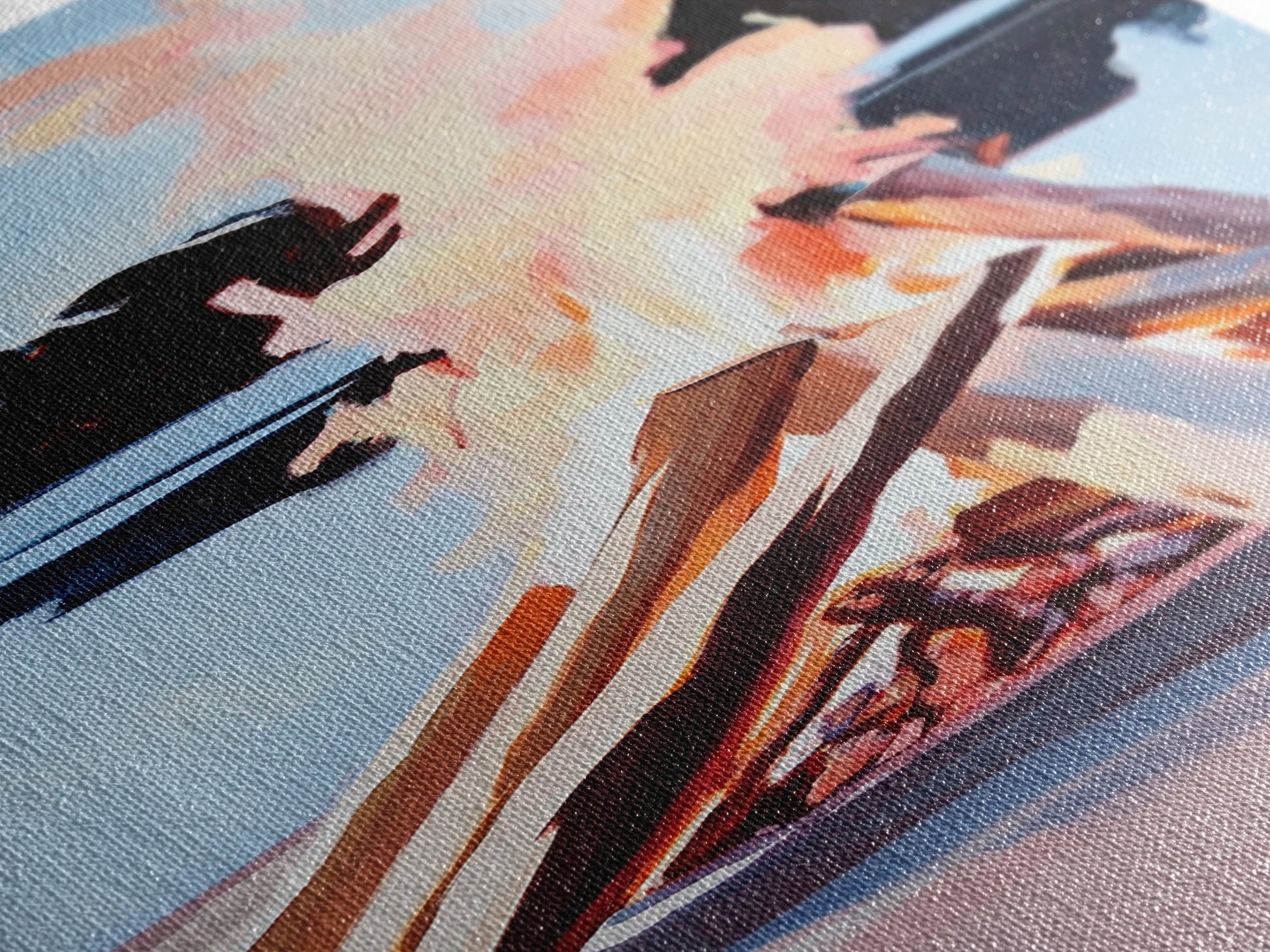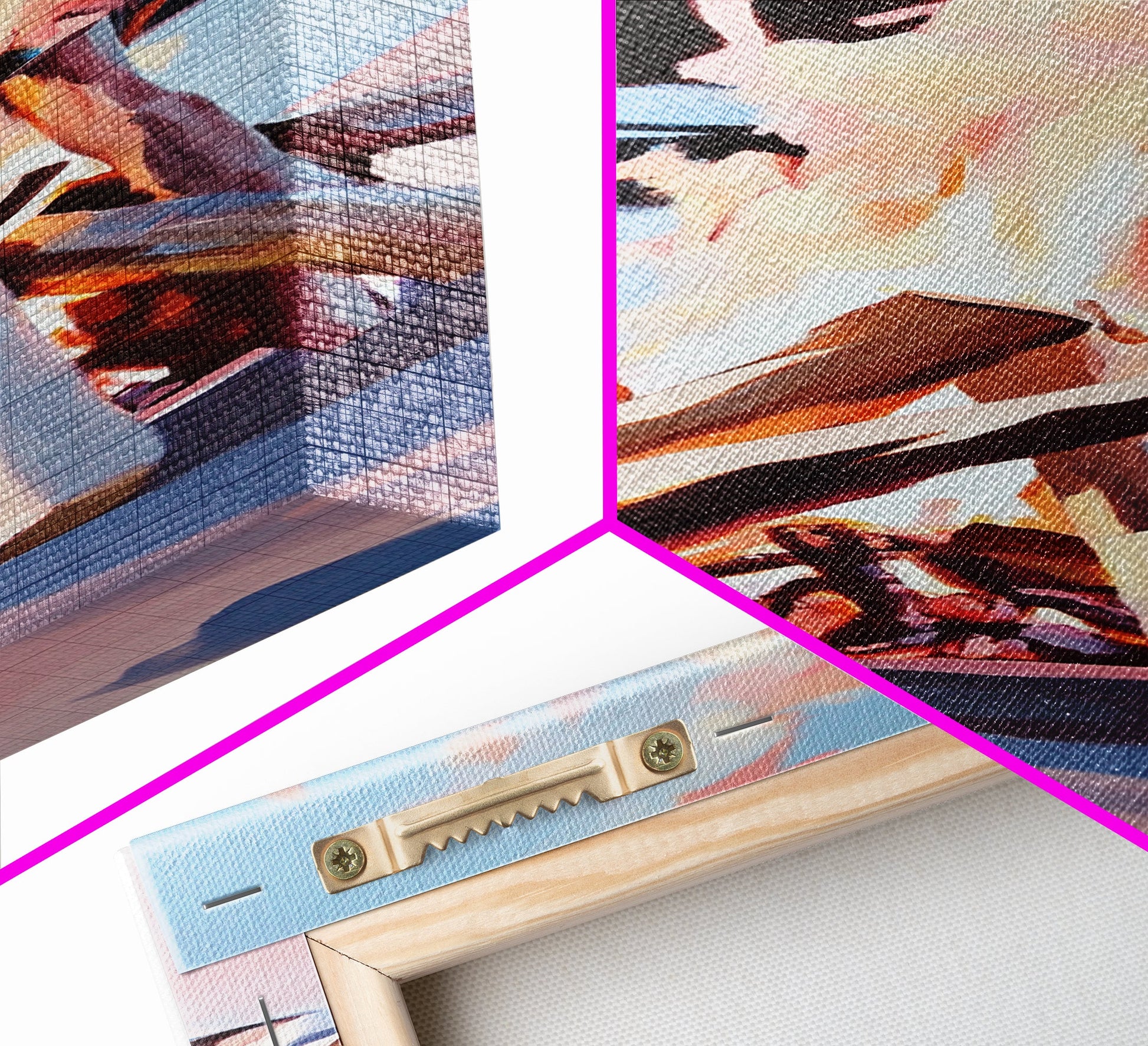 Hello and thank you for taking the time to view our modern high quality giclée artwork! We offer both posters and stretched canvas prints. Our posters are printed on Ultra Matte 60 lb / 230 GSM high quality photo paper, with a thickness of 10 mil. Our canvases are printed on museum grade 350 GSM canvas material with ECO friendly archival grade ink, then hand stretched and stapled over premium, FSC certified and shrink resistant frames. Designed and built to last a lifetime.