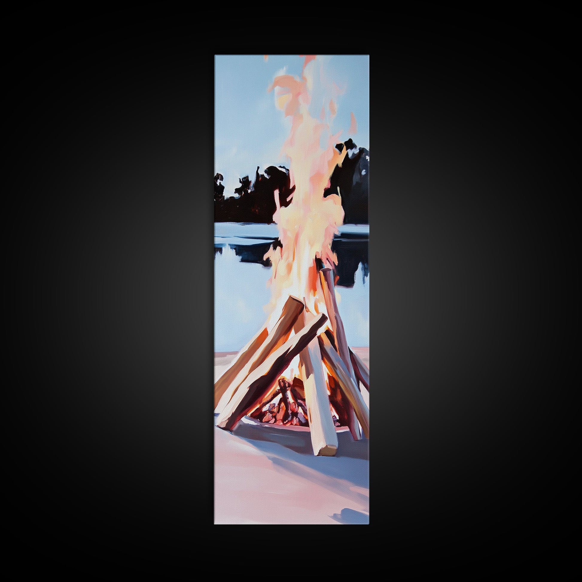 Campfire Glow, Rustic Art, Cozy Bonfire, Outdoor Adventure, Canvas Print, Fall Wall Art, Cabin Decor, Nature-Inspired, Warm Tones