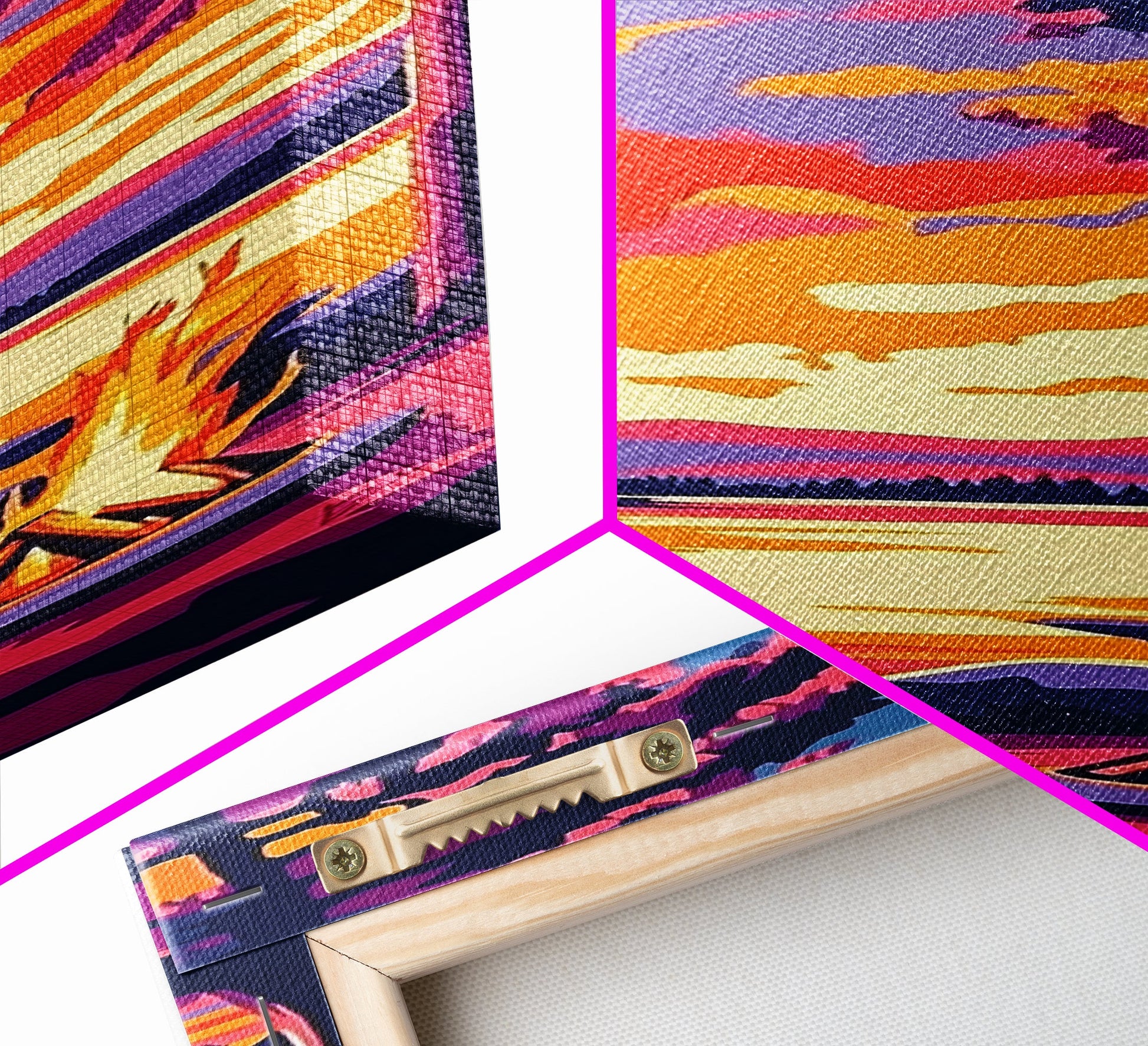 Campfire Glow, Sunset Painting, Fall Wall Art, Framed Canvas Print, Cabin Decor, Living Room Art, Outdoor Adventure Print, Nature Art