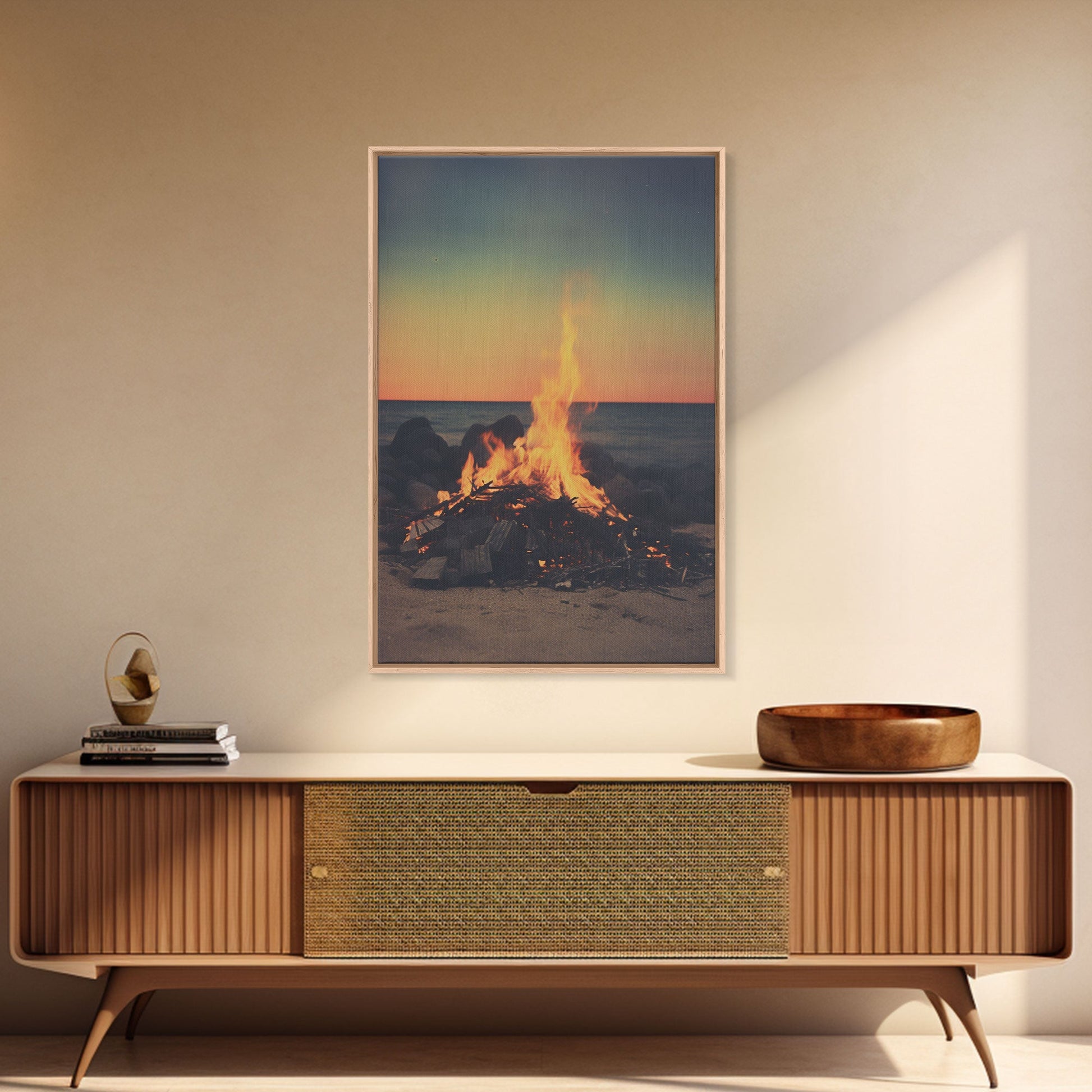 Campfire Wall Art, Beach Wall Art, Coastal Print, Canvas Print, Wall Hanging, Portrait Art, Minimalist Wall Art, Ocean Art, Military Gift