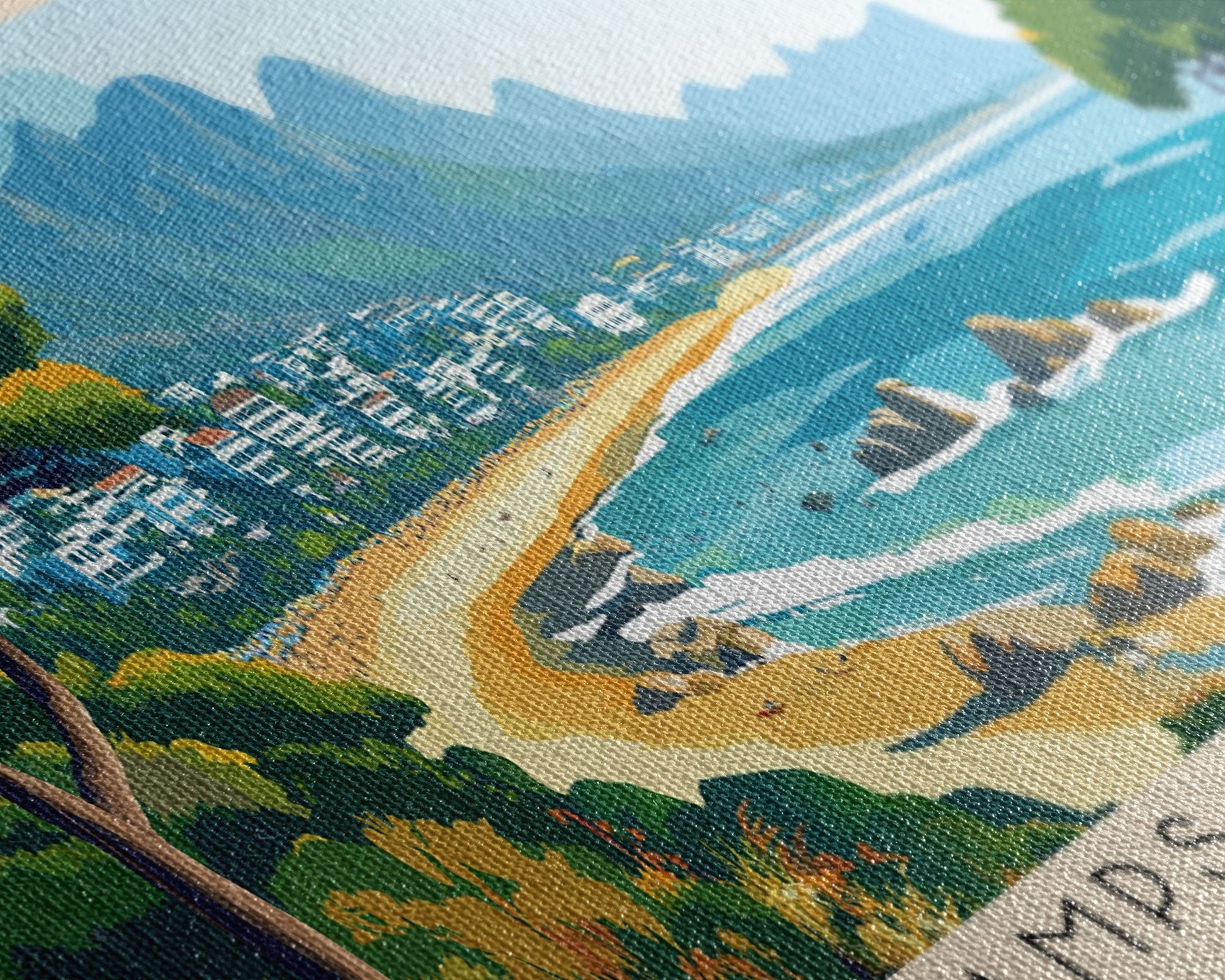 Camps Bay Beach, South Africa Panoramic Beach Print, Vacation Gift, South Africa Wall Art, Framed Canvas Print, Framed Beach Painting