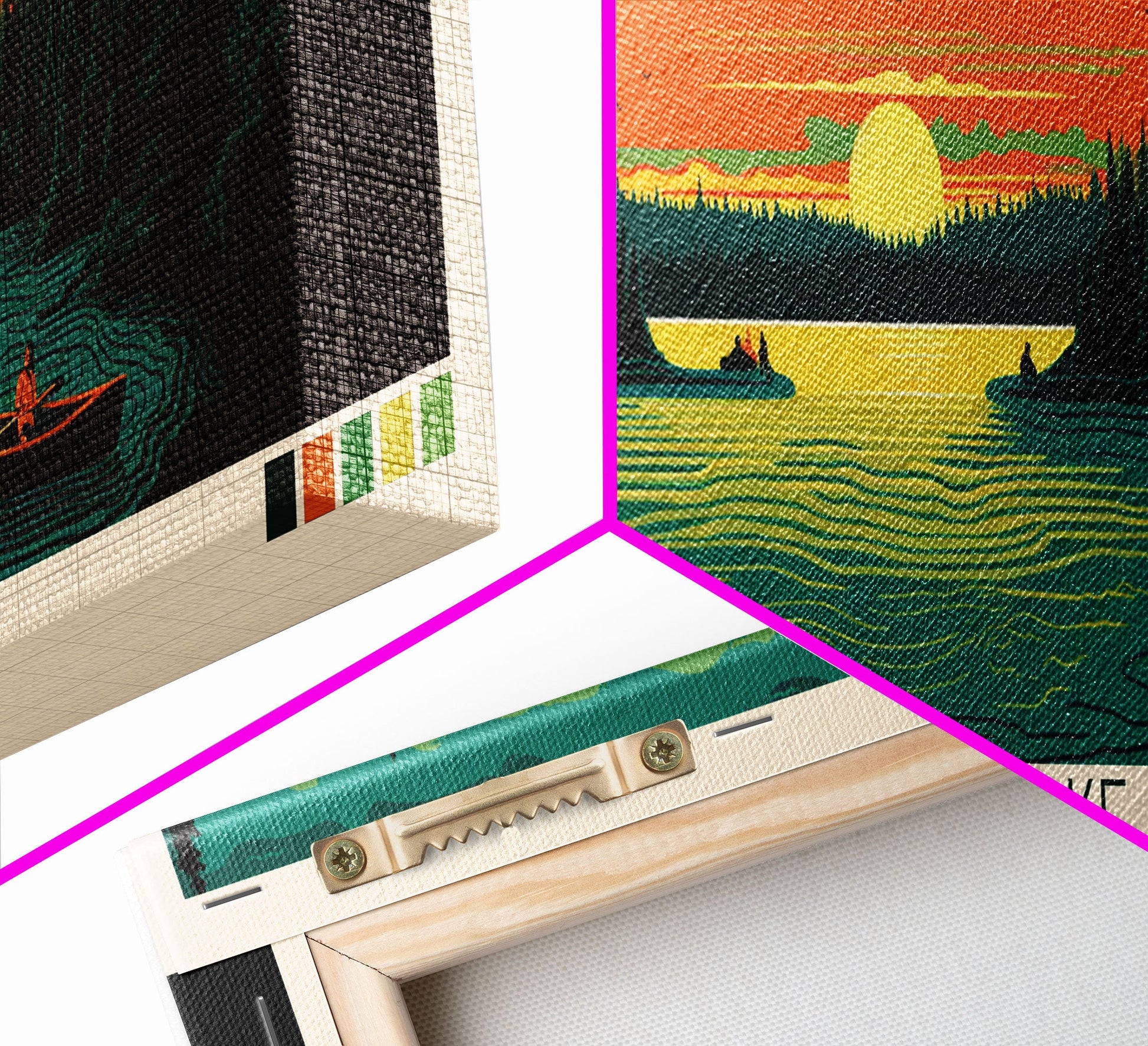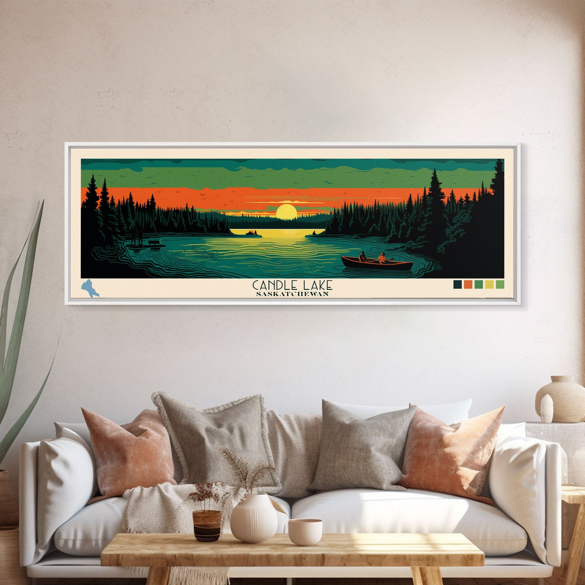 Candle Lake Saskatchewan Framed Canvas Print, Midcentury Modern Panoramic Wall Art, Living Room Decor, Pop Art, Travel Poster Art, Scenic Nature Painting