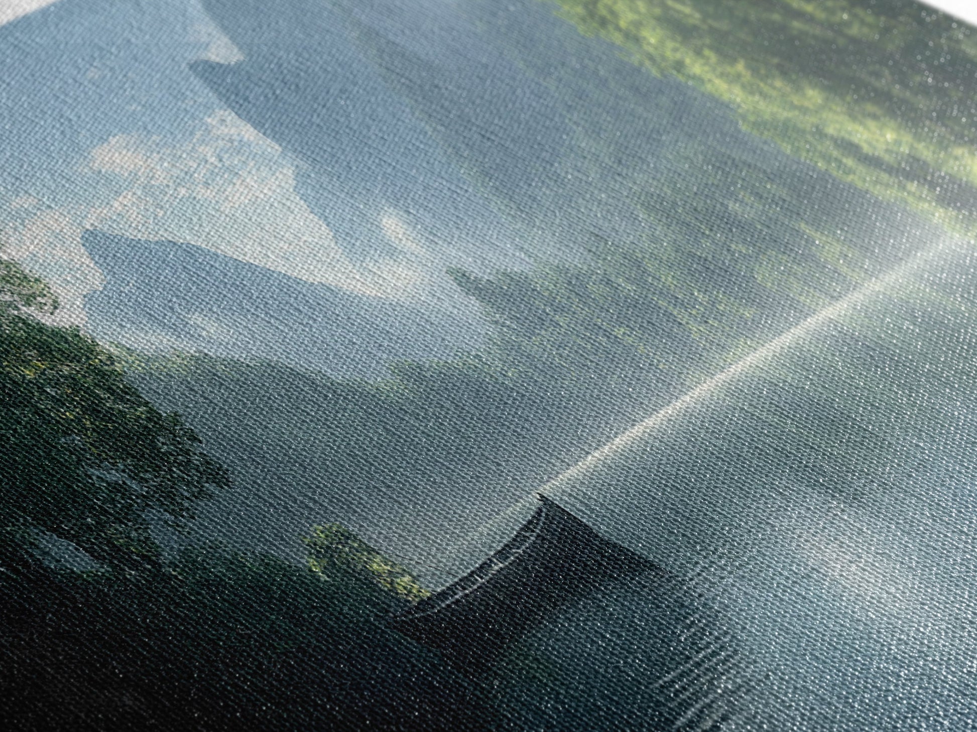 Canoe On The Lake, Framed Canvas Print, Moody Landscape Painting, Realism, Original Artwork, Rustic Lakehouse Decor, Oversized Wall Art