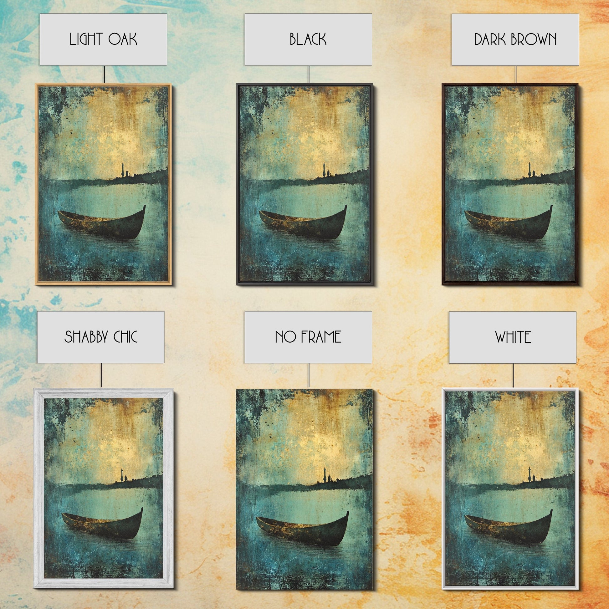 Canoe on the Lake Framed Canvas Print, Nautical Decor, Lakehouse Art, Abstract Lakehouse Painting, Lake Decor