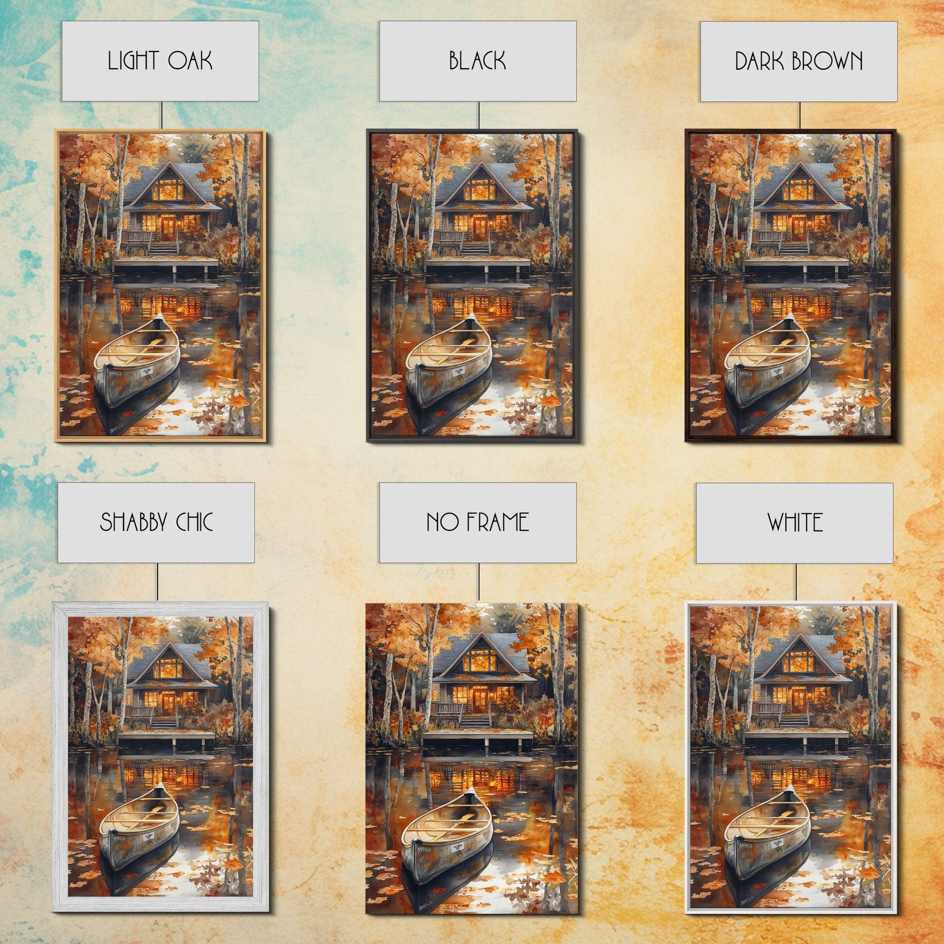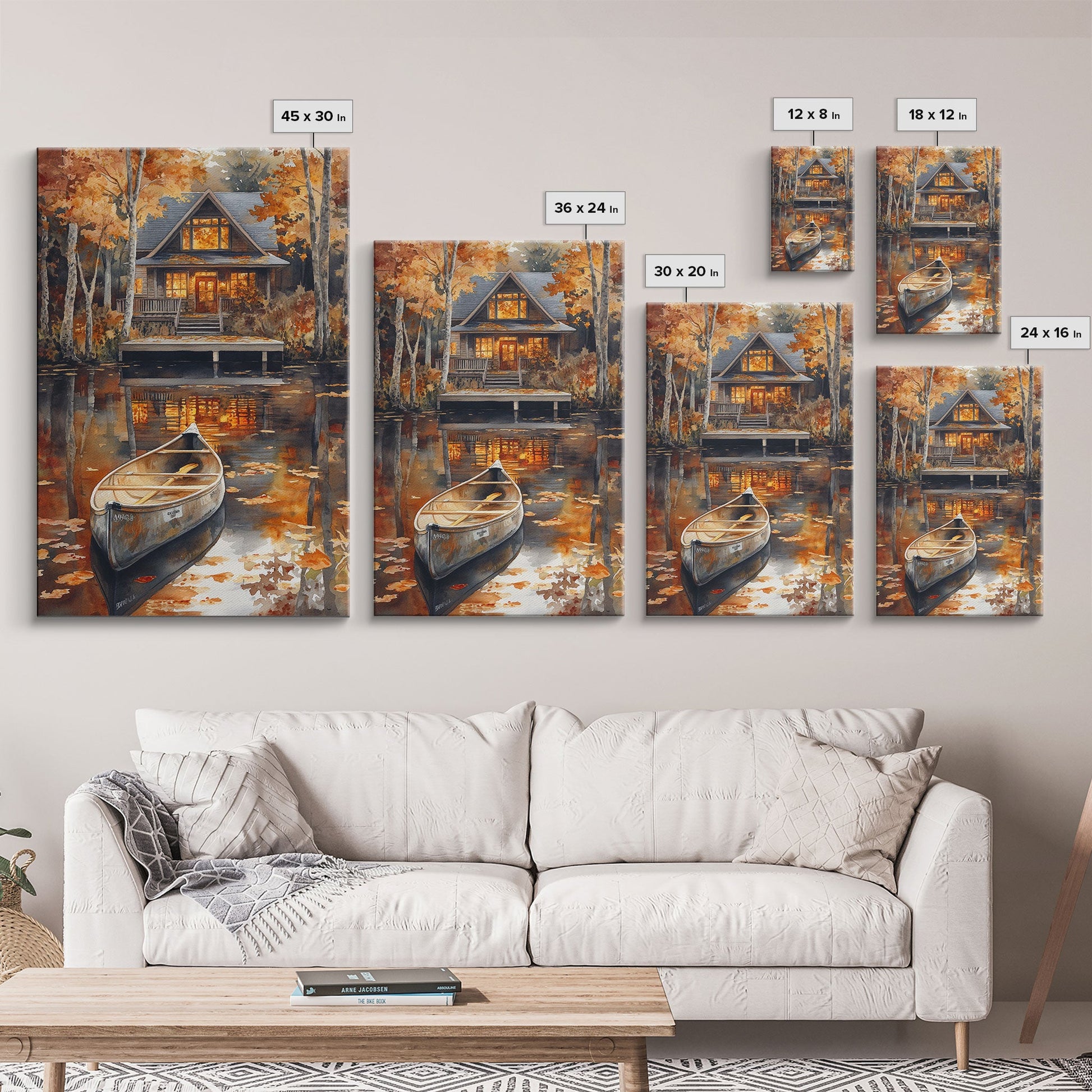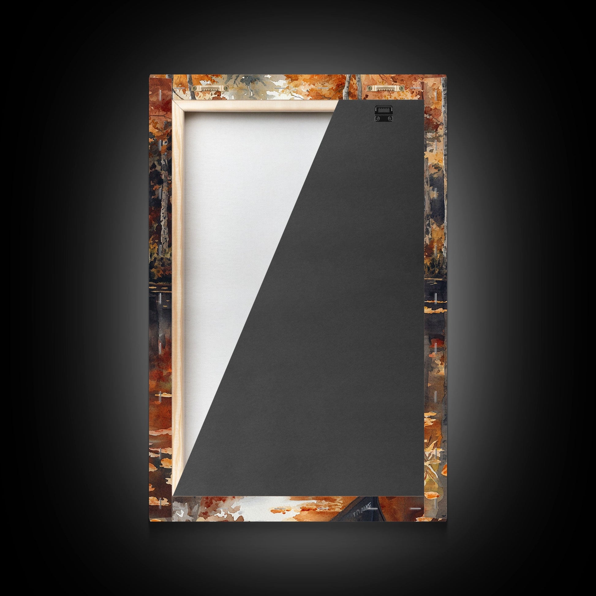 Canoe on the Lake, Lake House Decor, Framed Wall Art Canvas Print, Fall Decor, Seasonal Decor, Holiday Decor Gift
