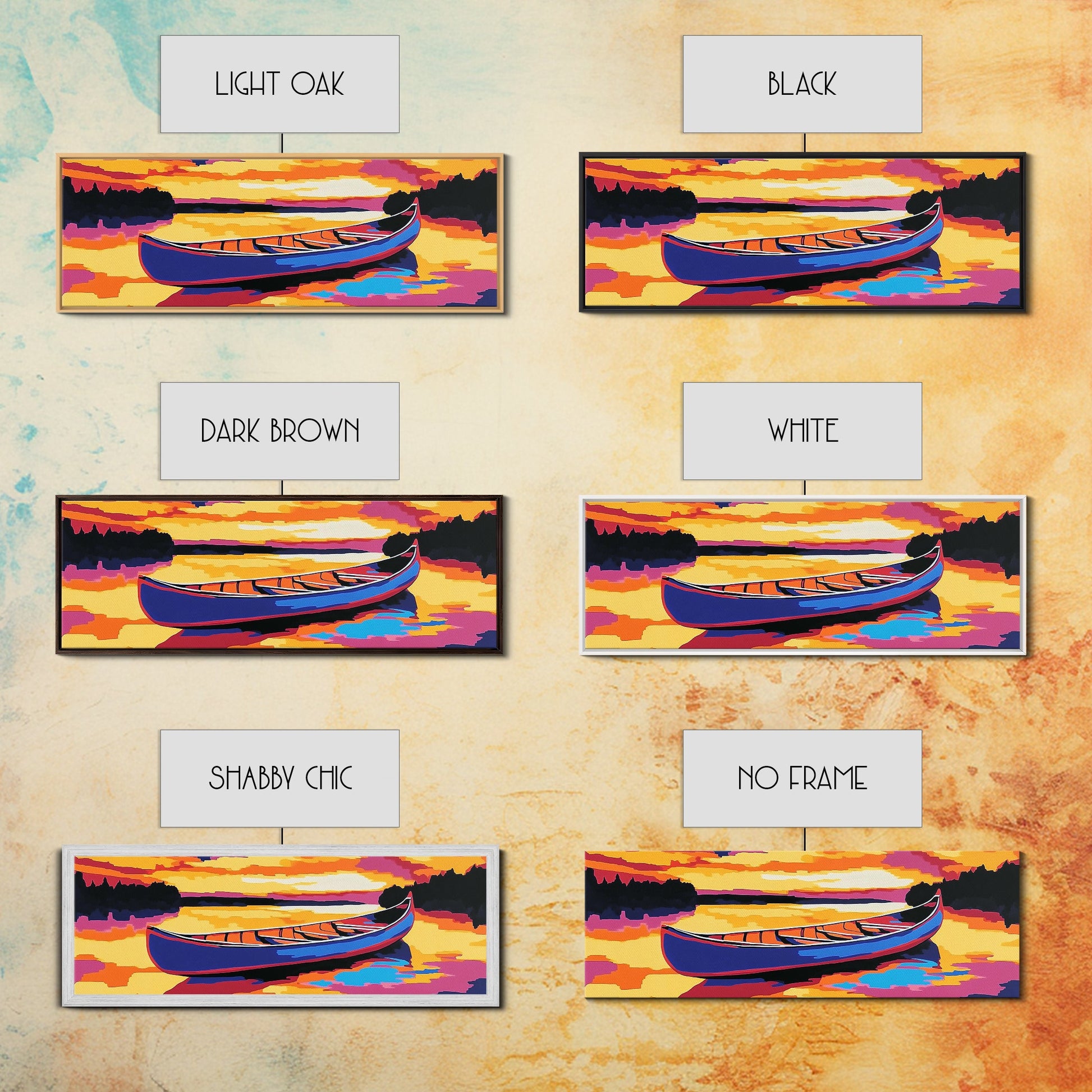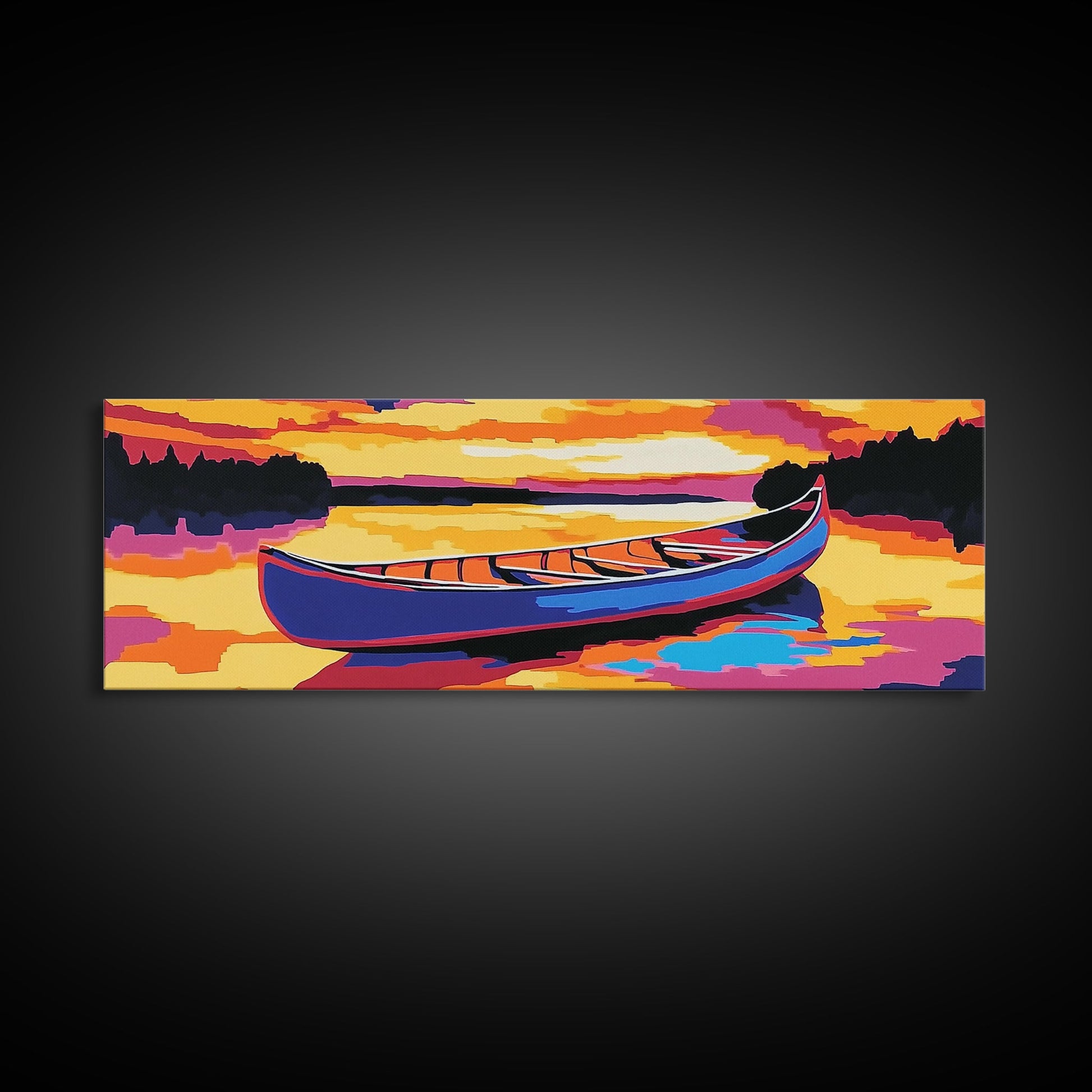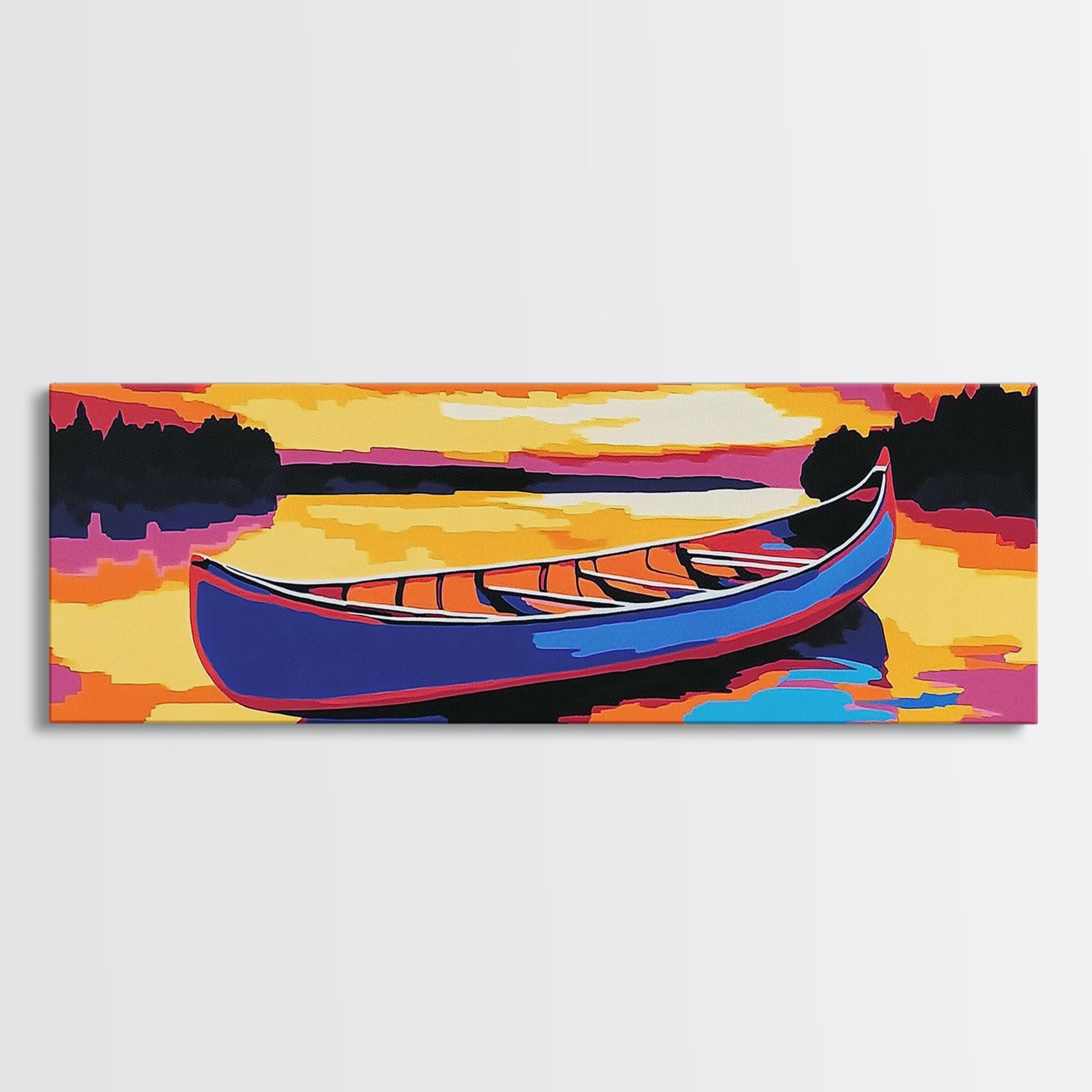 Canoe, Sunset, Water, Framed Canvas Print, Vibrant Lake Art, Nature Wall Art, Rustic Decor, Adventure Art, Cabin Wall Art, Autumn Artwork