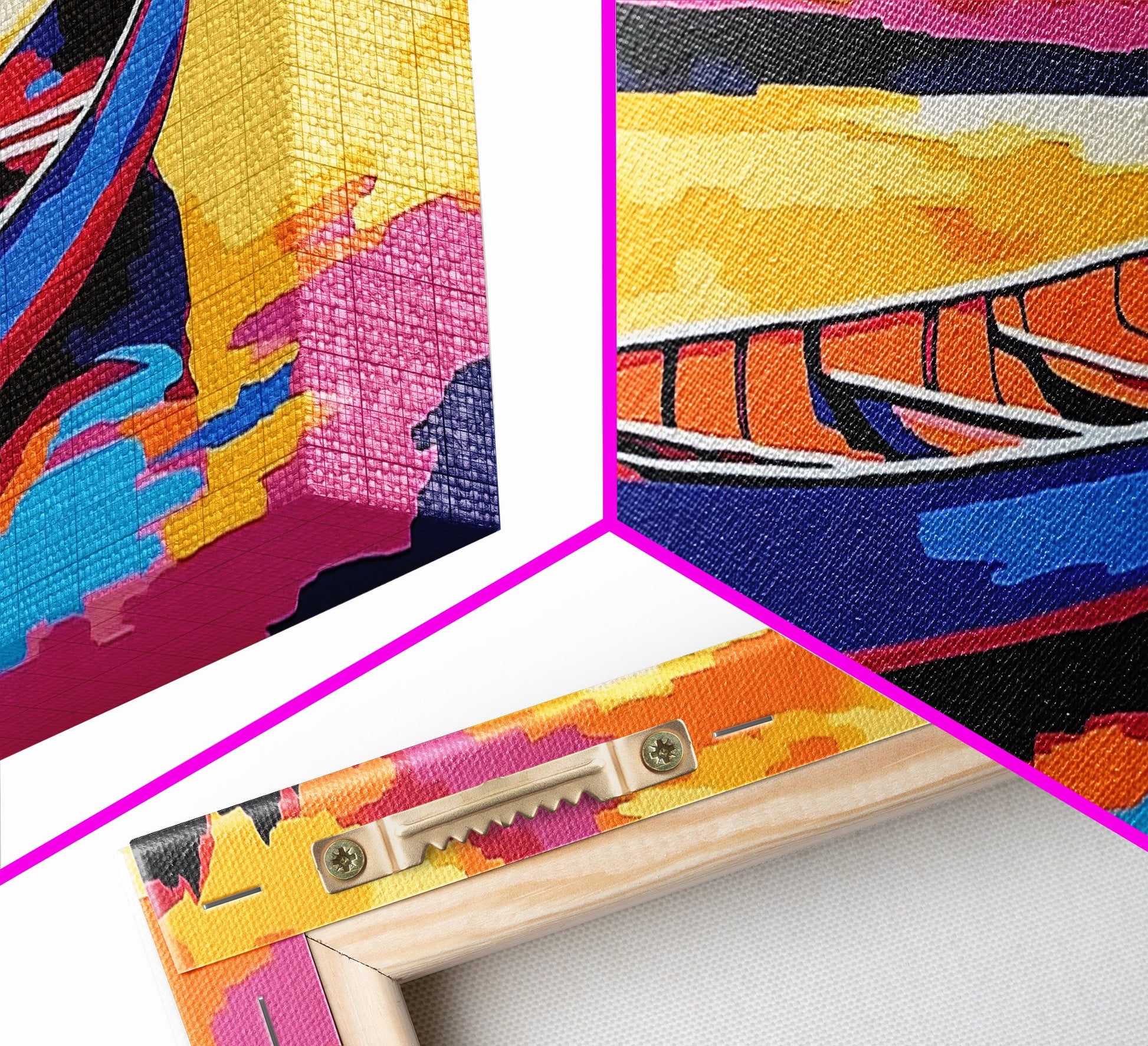 Hello and thank you for taking the time to view our modern high quality giclée artwork! We offer both posters and stretched canvas prints. Our posters are printed on Ultra Matte 60 lb / 230 GSM high quality photo paper, with a thickness of 10 mil. Our canvases are printed on museum grade 350 GSM canvas material with ECO friendly archival grade ink, then hand stretched and stapled over premium, FSC certified and shrink resistant frames. Designed and built to last a lifetime.