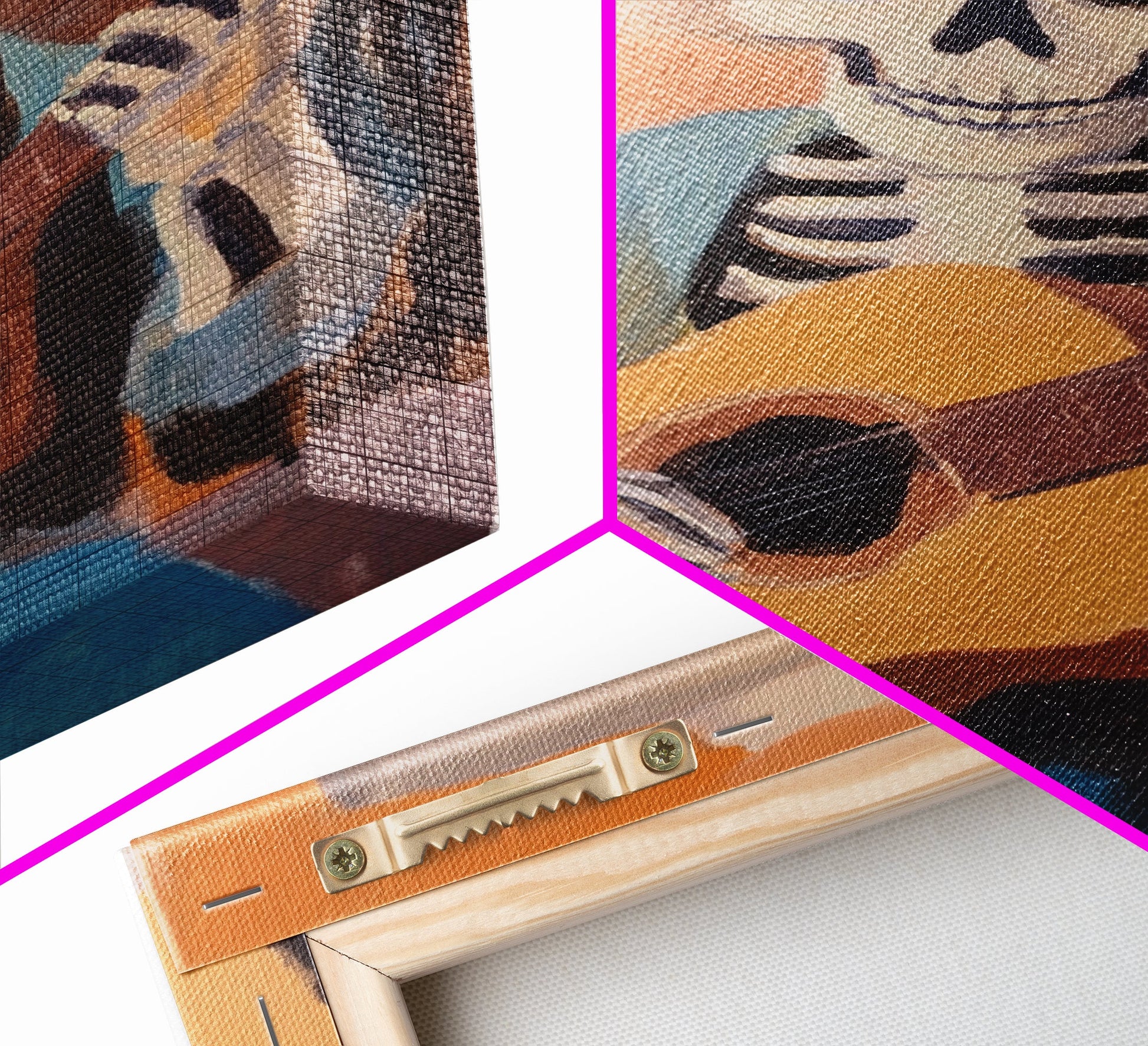 Canvas Print of a Sekelton Cowboy Guitar Player - Chicano Art - Wood Framed Canvas - Original Art