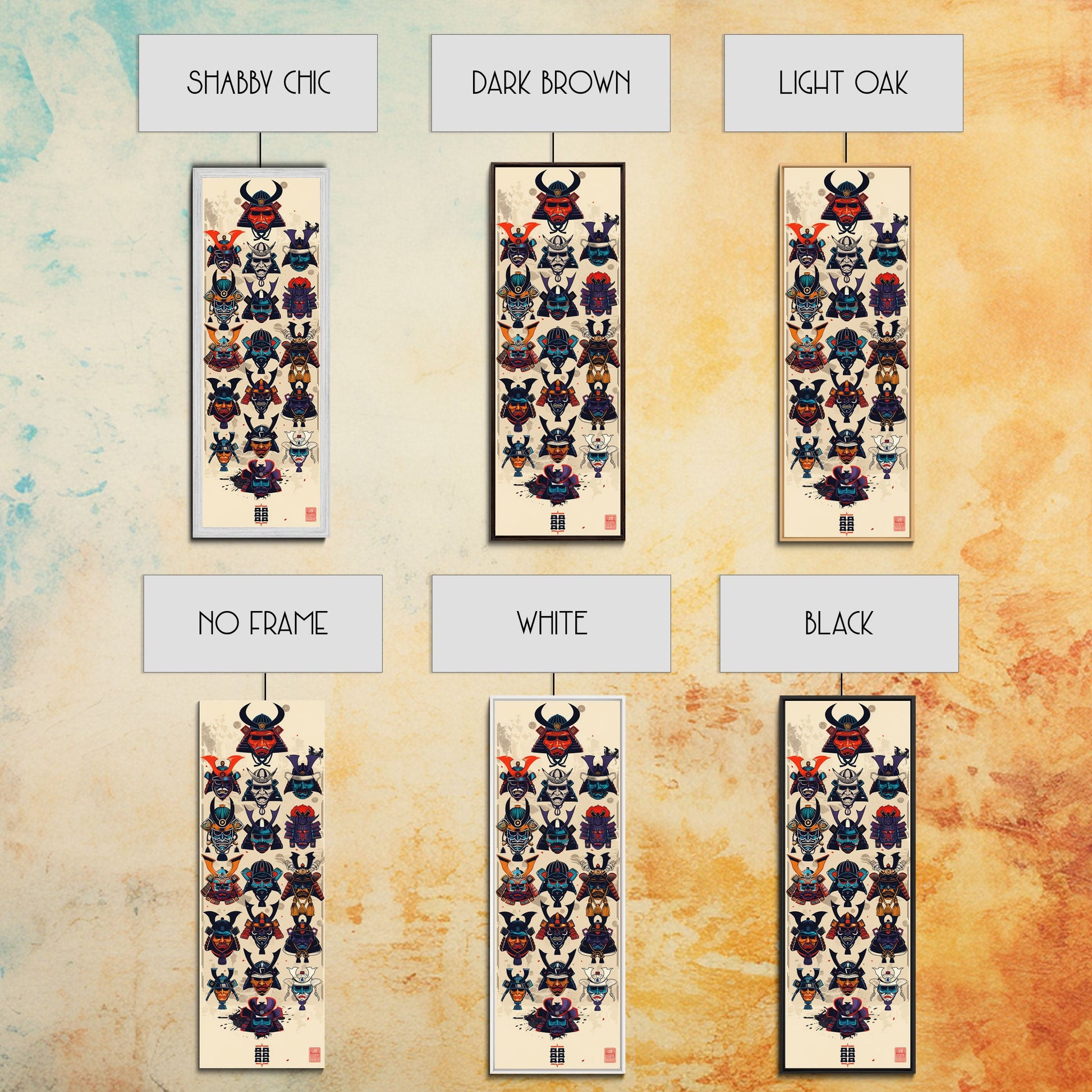 Canvas Print Traditional Japanese Samurai Helmets Collection, Intricate Details In Warrior Masks, Bold Cultural Decor For Any Space