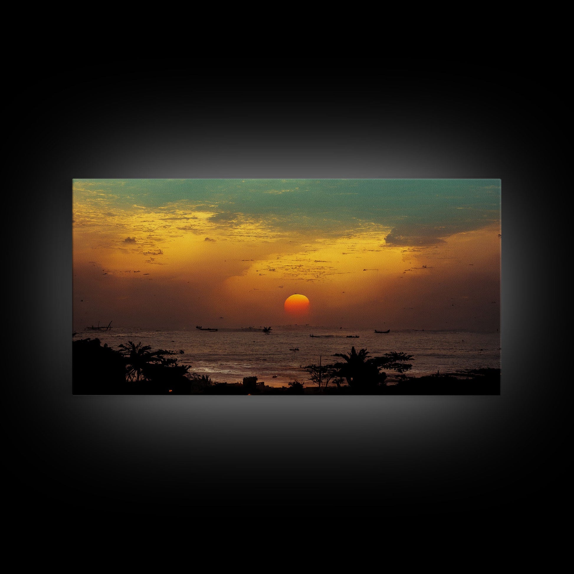 Canvas Print, Tropical sunset over the ocean, beach art, island life, living room wall art, guest room wall art