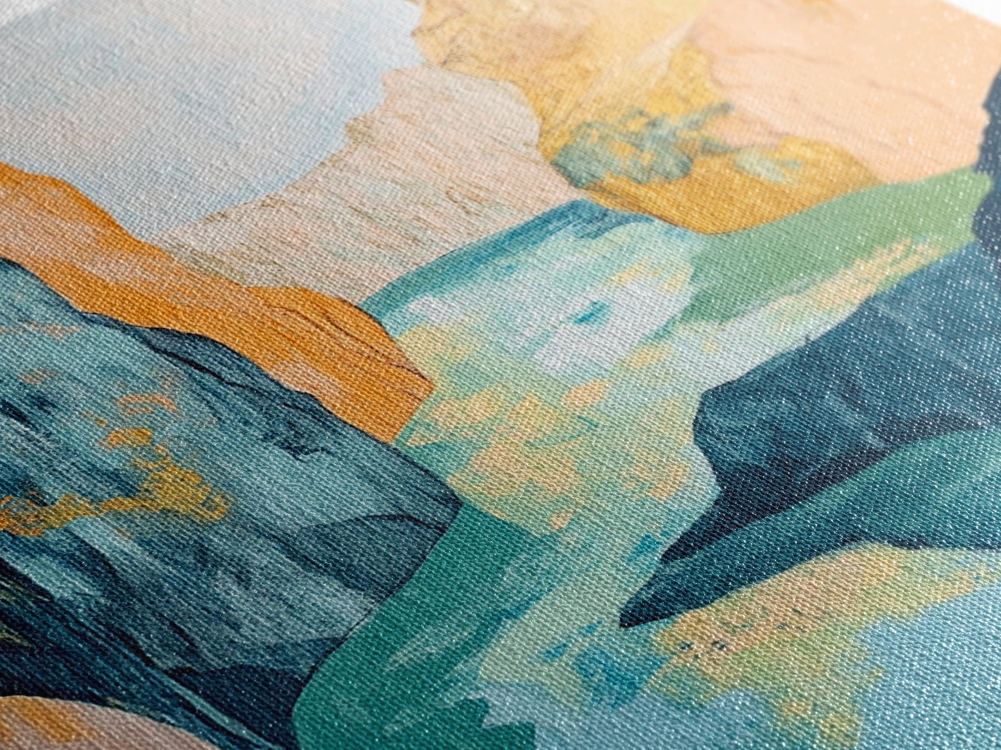 Most of our canvases are made in the USA, with the exception of canvases ordered with the light oak unstained frames, and any large canvases (24x48, 30x60, 16x48 and 20x60) ordered WITH a frame. These are temporarily made in and shipped from Europe, while we try to find a more consistent supplier in the USA.