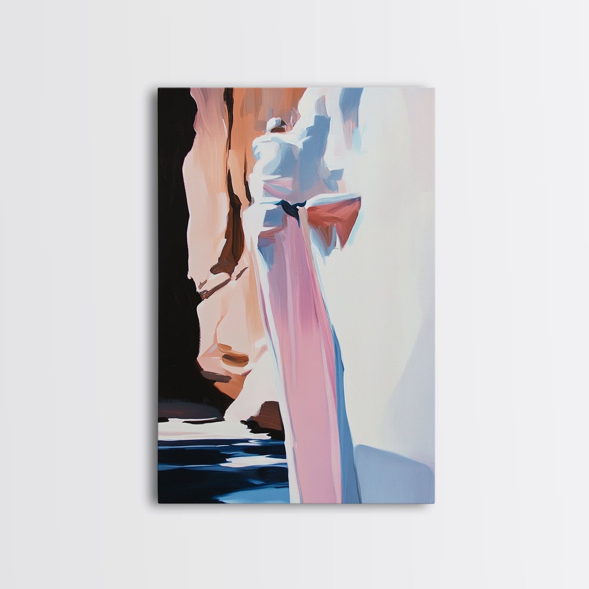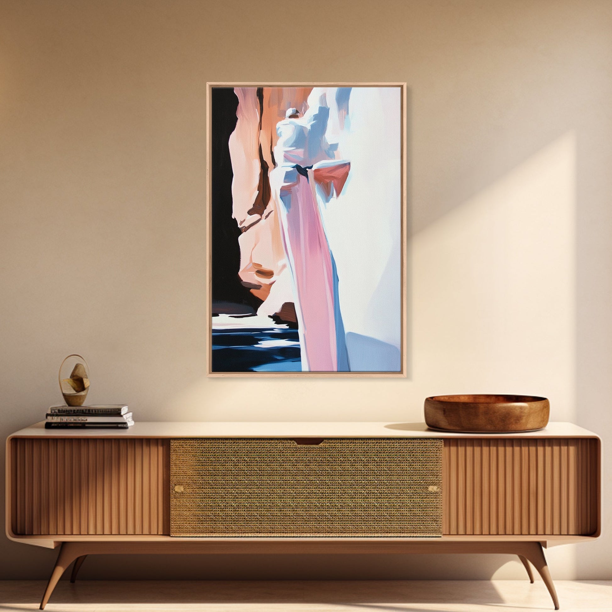 Canyon Serenity, Earthy Landscape, Nature Inspired Art, Warm Neutral Tones, Rustic Minimalist Style, Framed Canvas Print