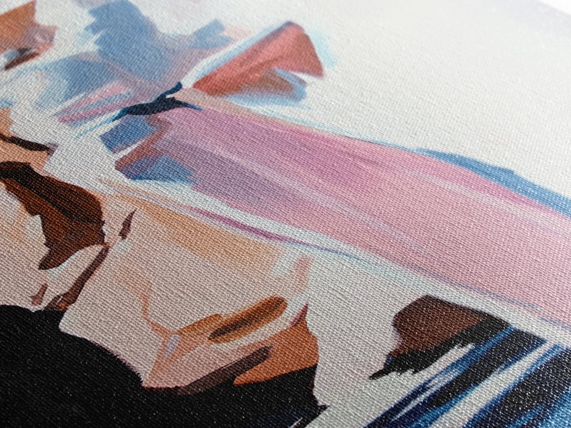 Most of our canvases are made in the USA, with the exception of canvases ordered with the light oak unstained frames, and any large canvases (24x48, 30x60, 16x48 and 20x60) ordered WITH a frame. These are temporarily made in and shipped from Europe, while we try to find a more consistent supplier in the USA.