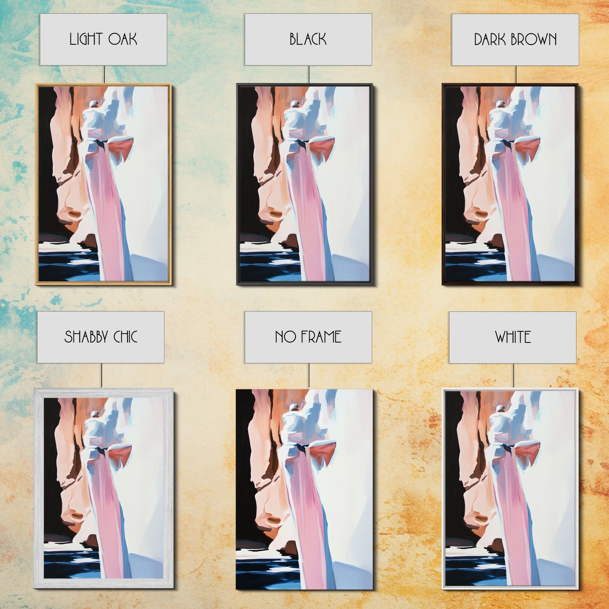*Optional frames add a total of 1.5 inches to each dimension, for example a 10x20 canvas with a frame will be 11.5 by 21.5 inches total. All framed canvas are 1.5" total depth.