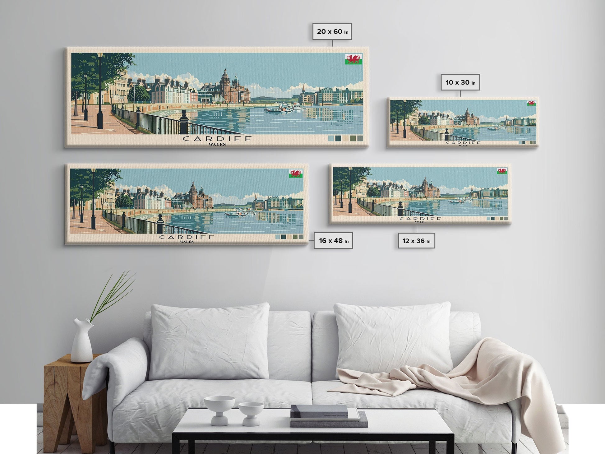 Cardiff, Wales Panoramic Canvas Print, Cardiff, Wales Painting, Wales Art, Cardiff Travel Poster, Travel Art, Guest Room Painting