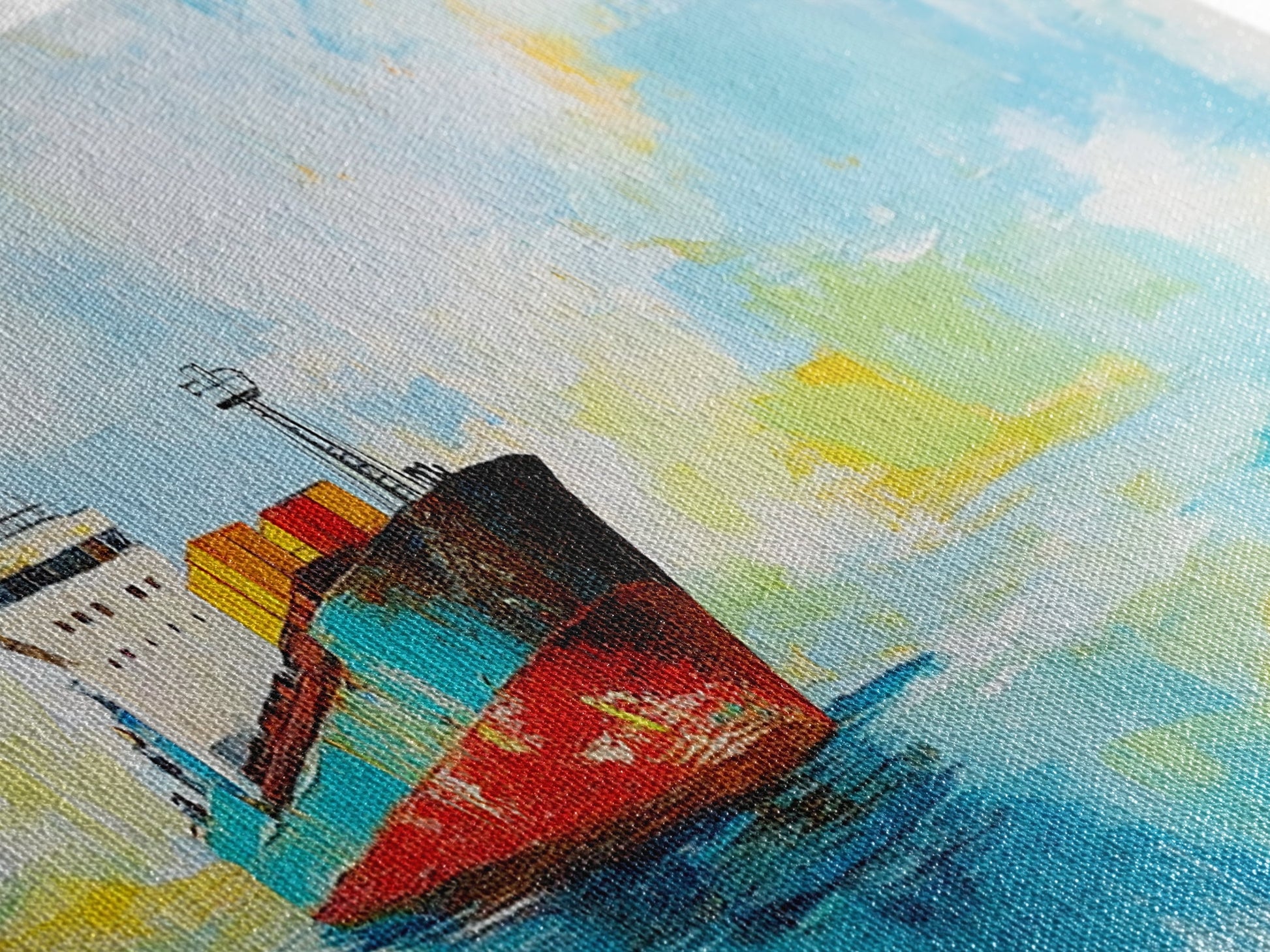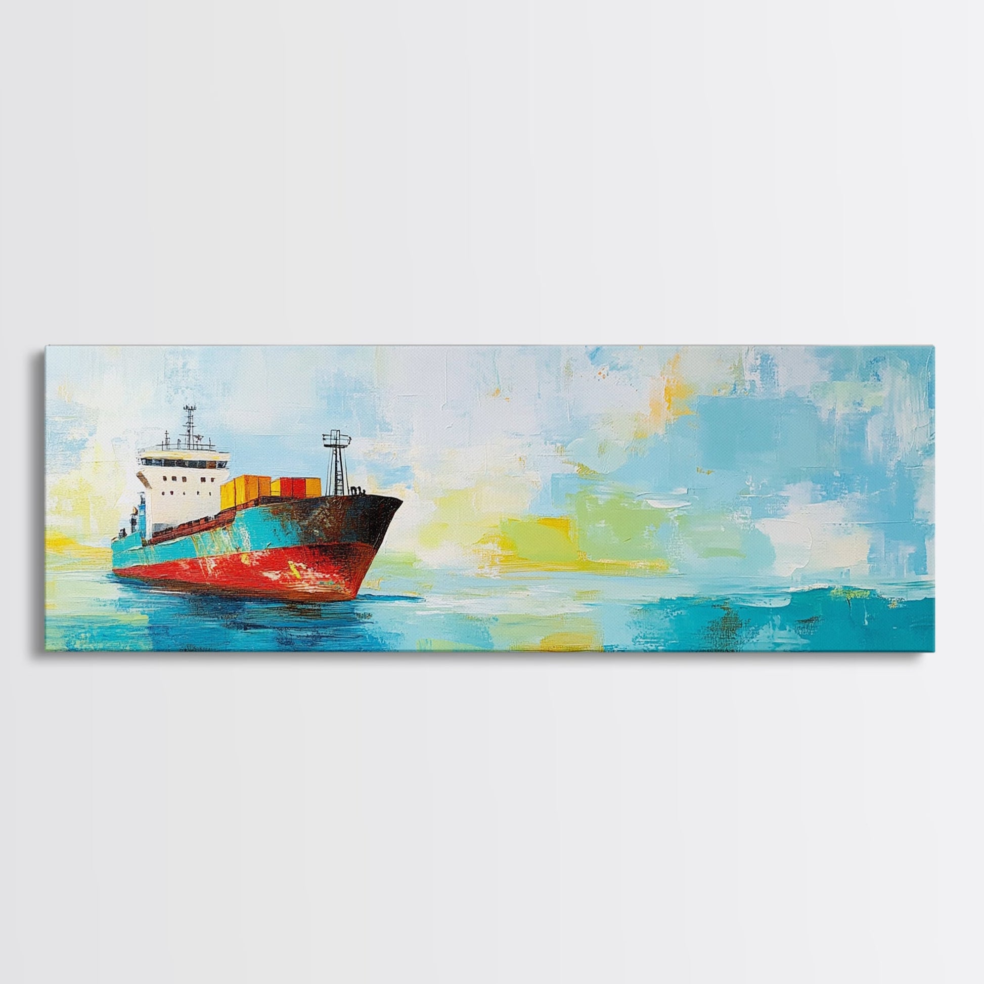 Cargo Ship Ocean Framed Canvas Print Nautical Wall Art, Maritime Decor, Industrial Seascape Painting, Coastal Living Room Artwork