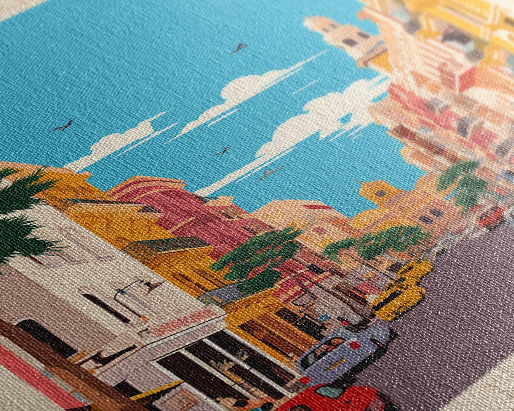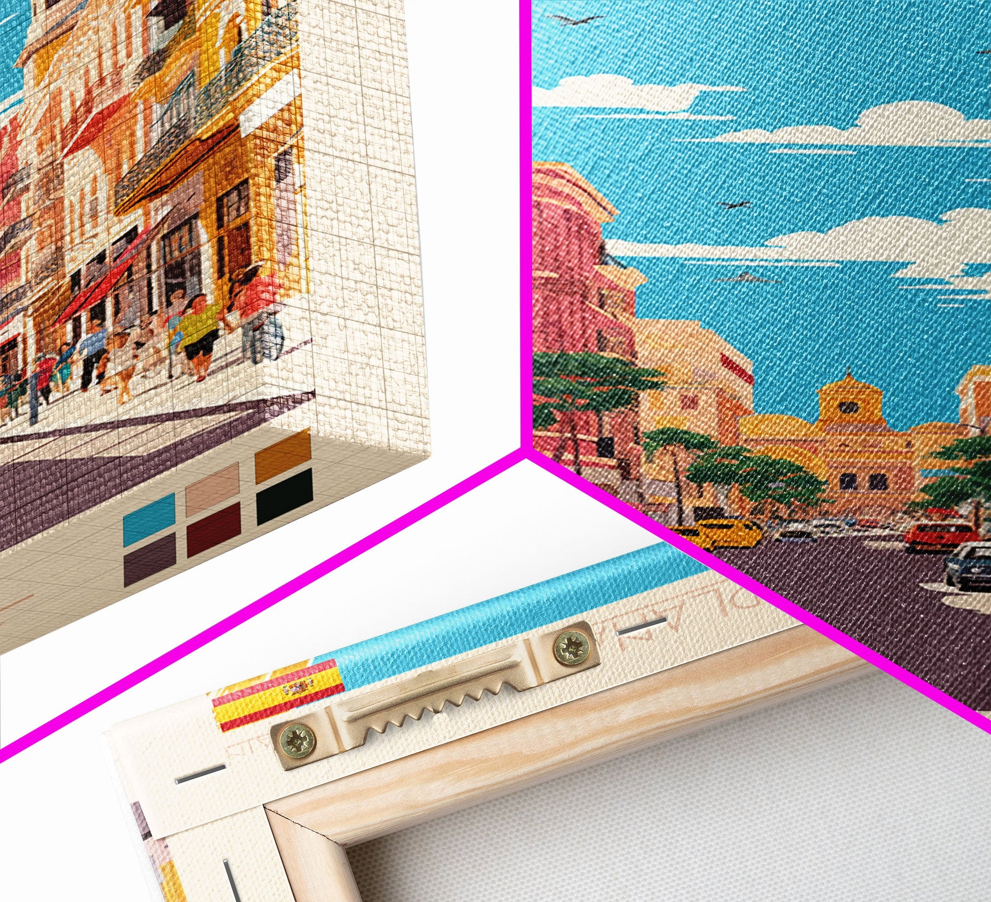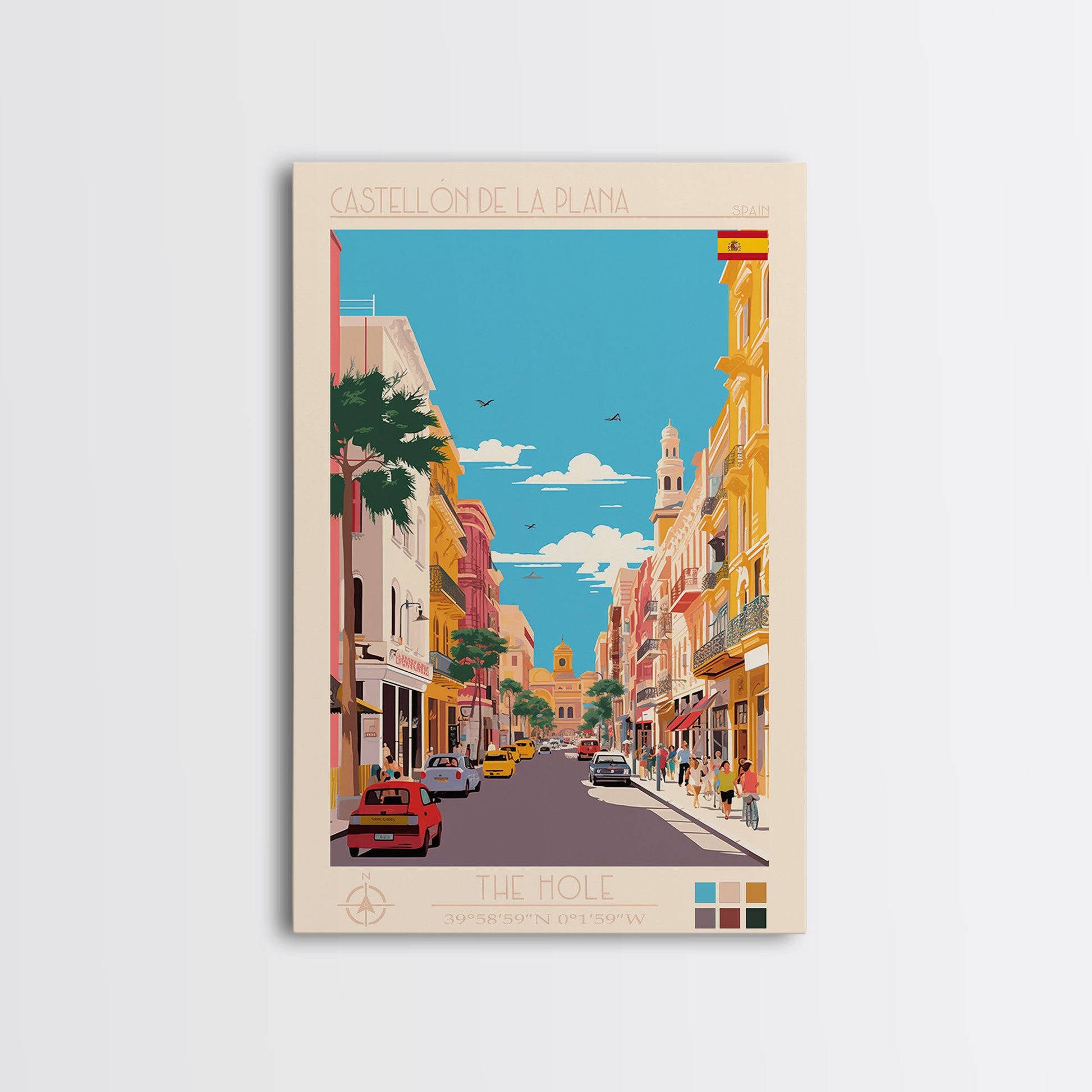 Castellón de la Plana Spain Travel Poster Framed Canvas Print, Midcentury Modern Art, Pop Art Wall Decor, Home Decor, Vacation Gift, Living Room Art
