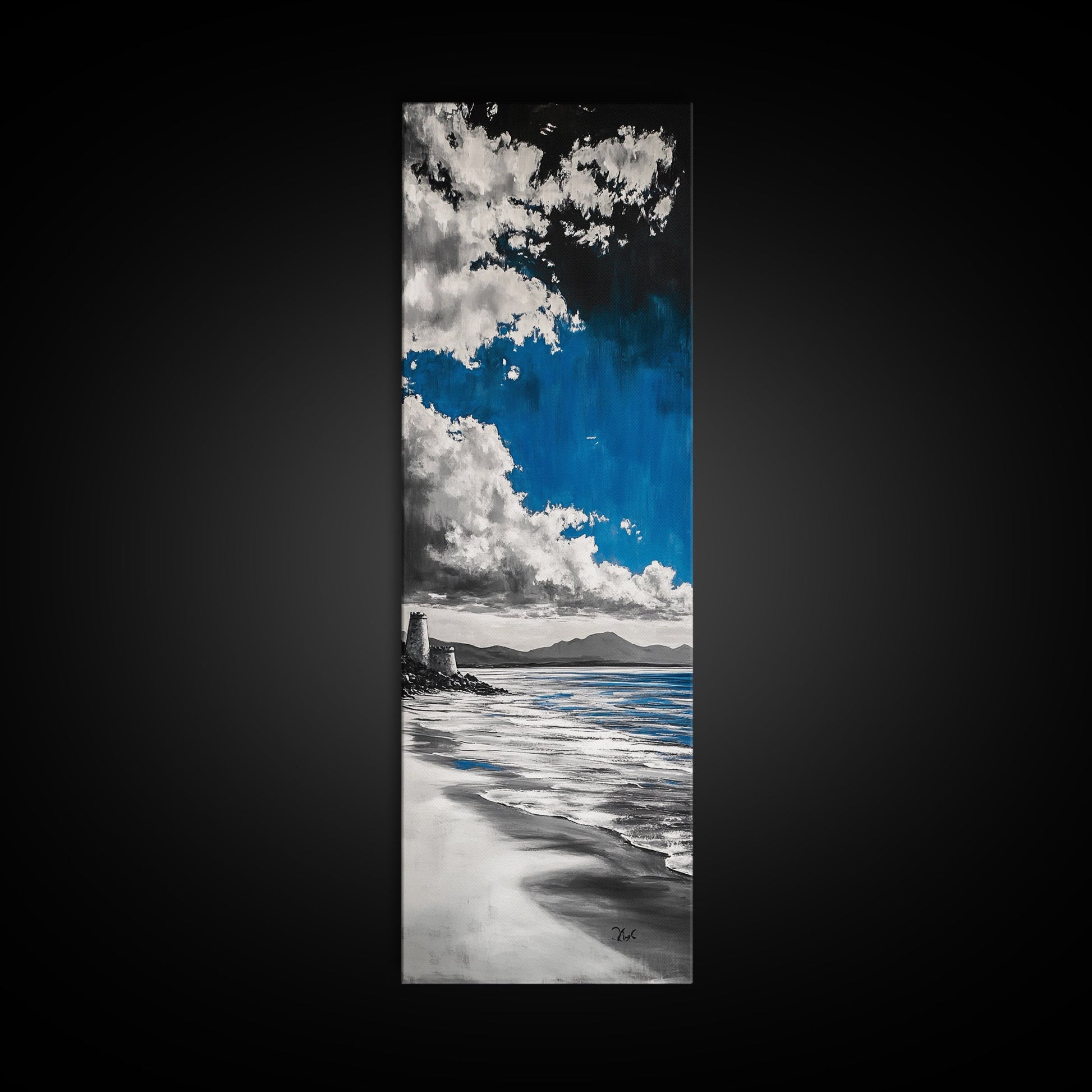 Castle Beach, Coastal Landscape, Blue Sky Painting, Framed Canvas Print, Nautical Decor, Living Room Art, Ocean Lover Gift