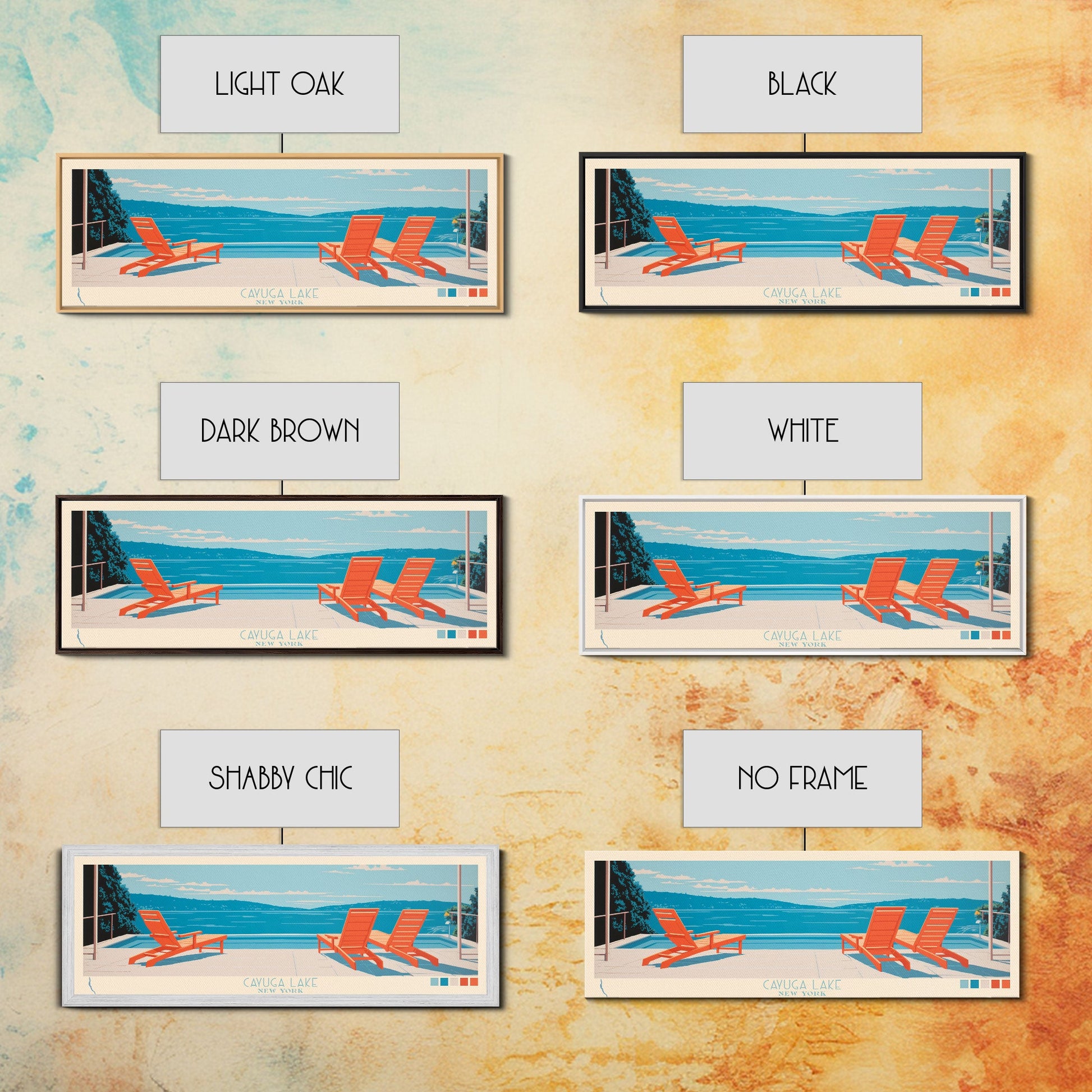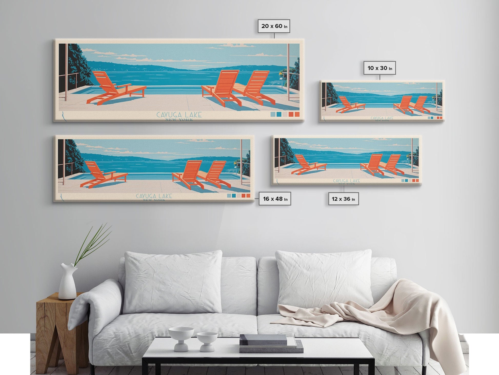 Cayuga Lake New York Framed Canvas Print, Pop Art Panoramic Travel Poster, Midcentury Modern, Wall Art, Scenic Nature Painting, Bedroom Decor, Living Room Art