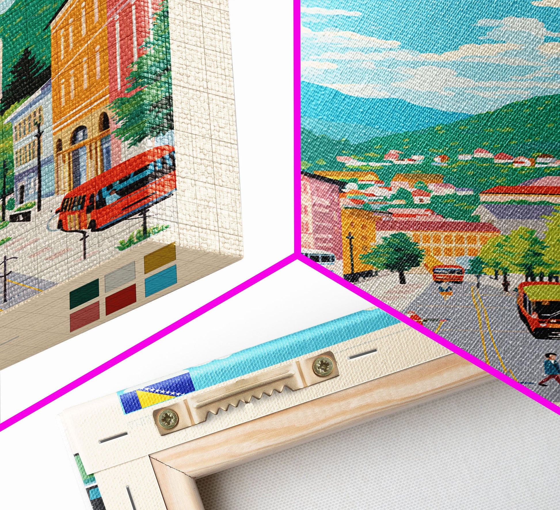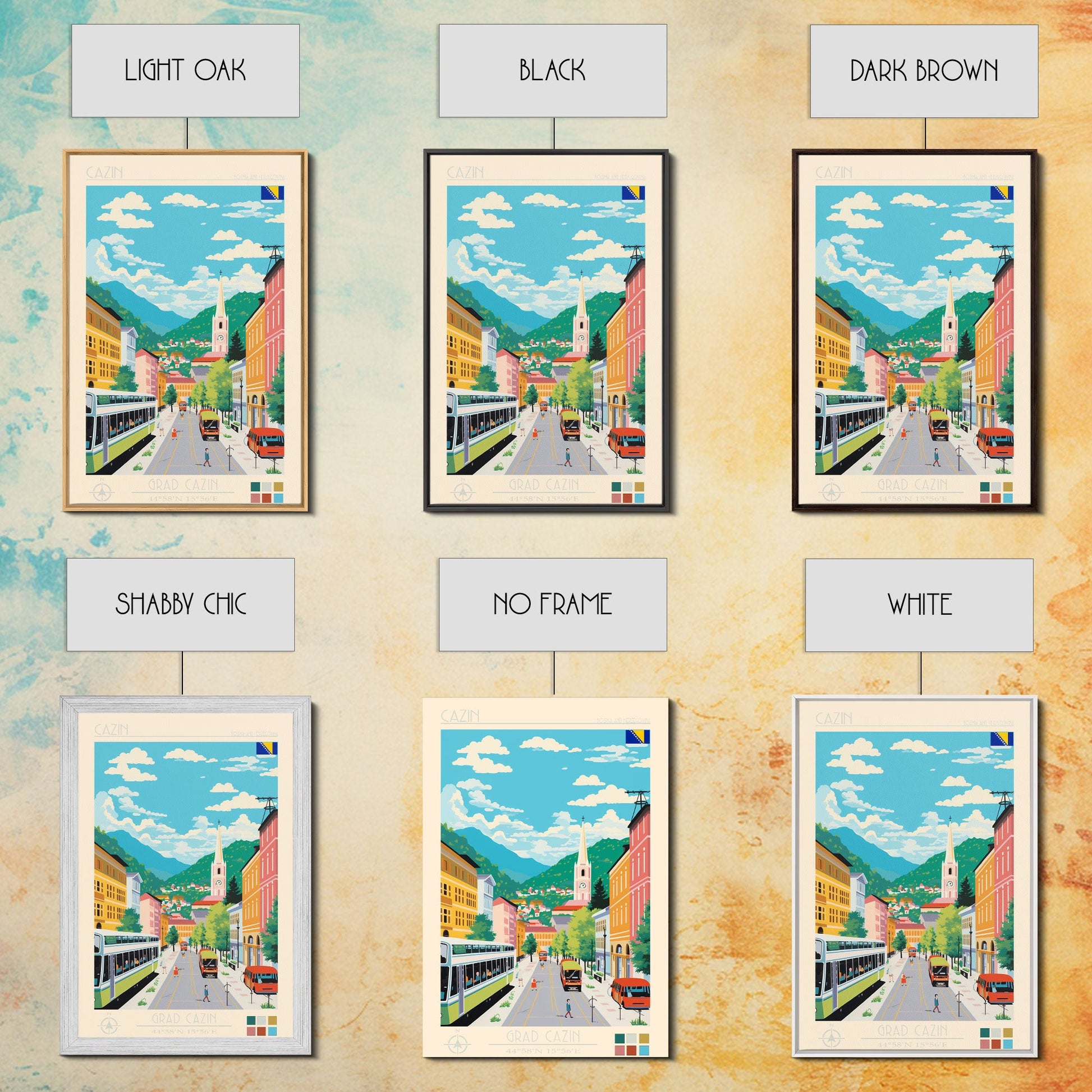 Cazin Bosnia and Herzegovina Travel Poster Framed Canvas Print, Midcentury Modern Art, Pop Art Wall Decor, Home Decor, Living Room Art