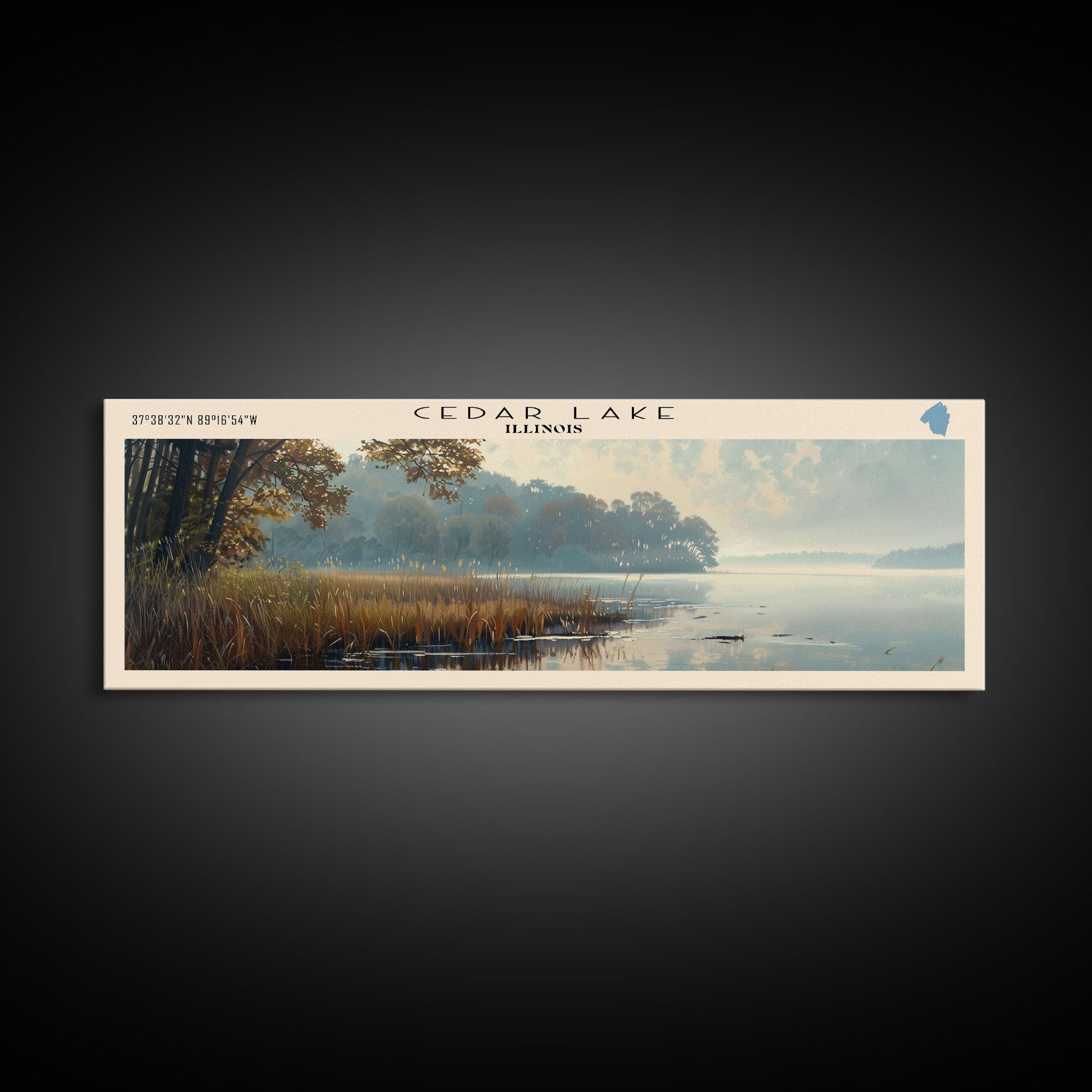 Cedar Lake Illinois Framed Canvas Print, Lake House Art, Panoramic Wide Art, Travel Poster, Minimalist Lake Painting, Home Decor