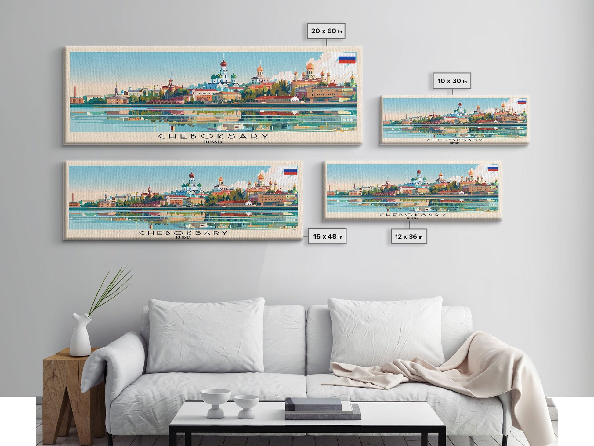 Cheboksary Russia Travel Art, City Art, Framed Canvas Print or Metal Wall Art, Europe Travel Poster, Panoramic Wall Art, Extra Wide Wall Art