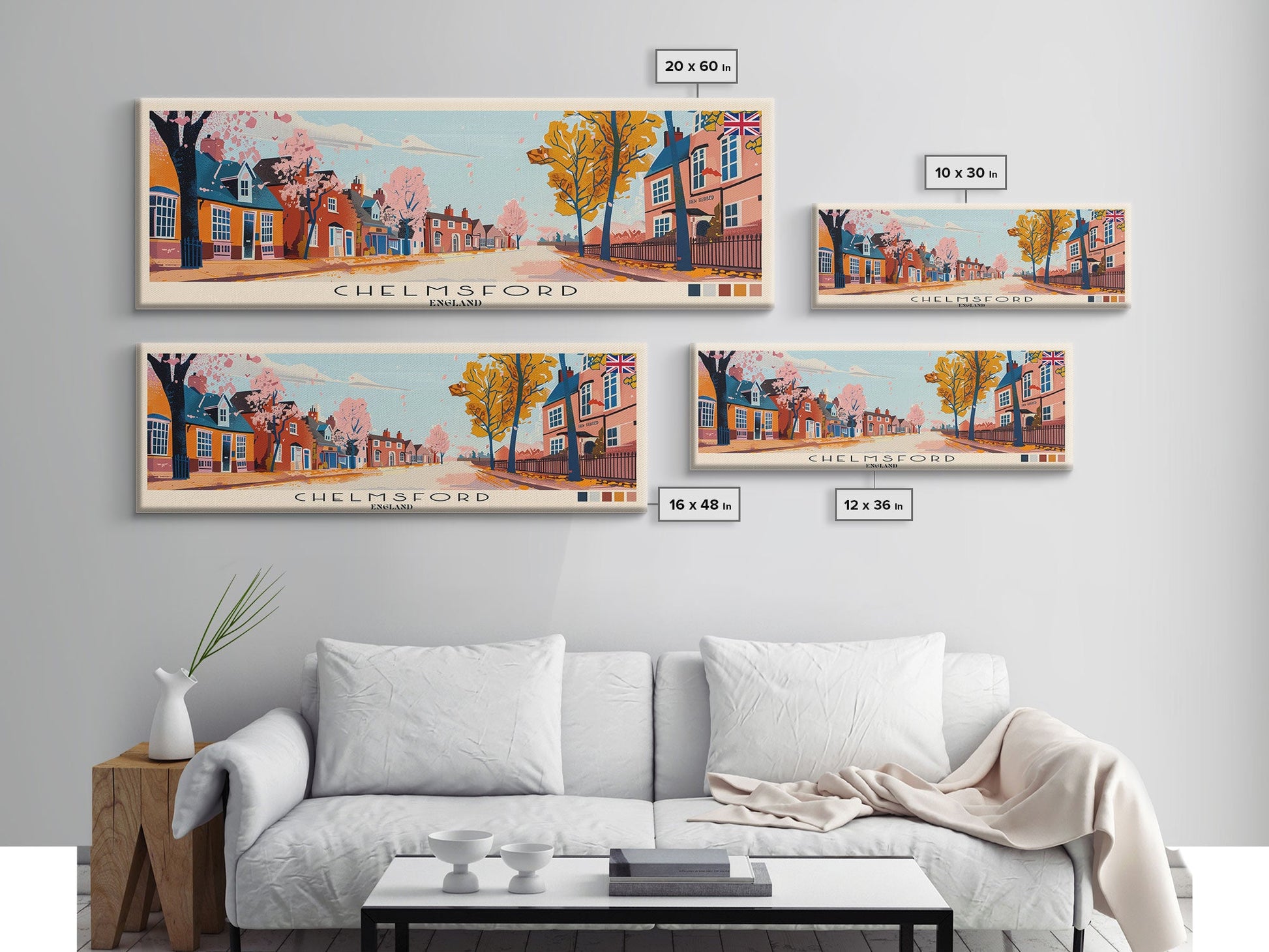 Chelmsford, England Panoramic Canvas Print, Chelmsford, England Painting, England Art, Chelmsford Travel Poster, Travel Art, Guest Room Painting