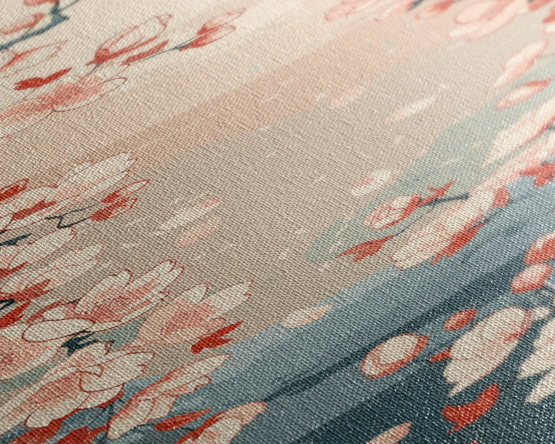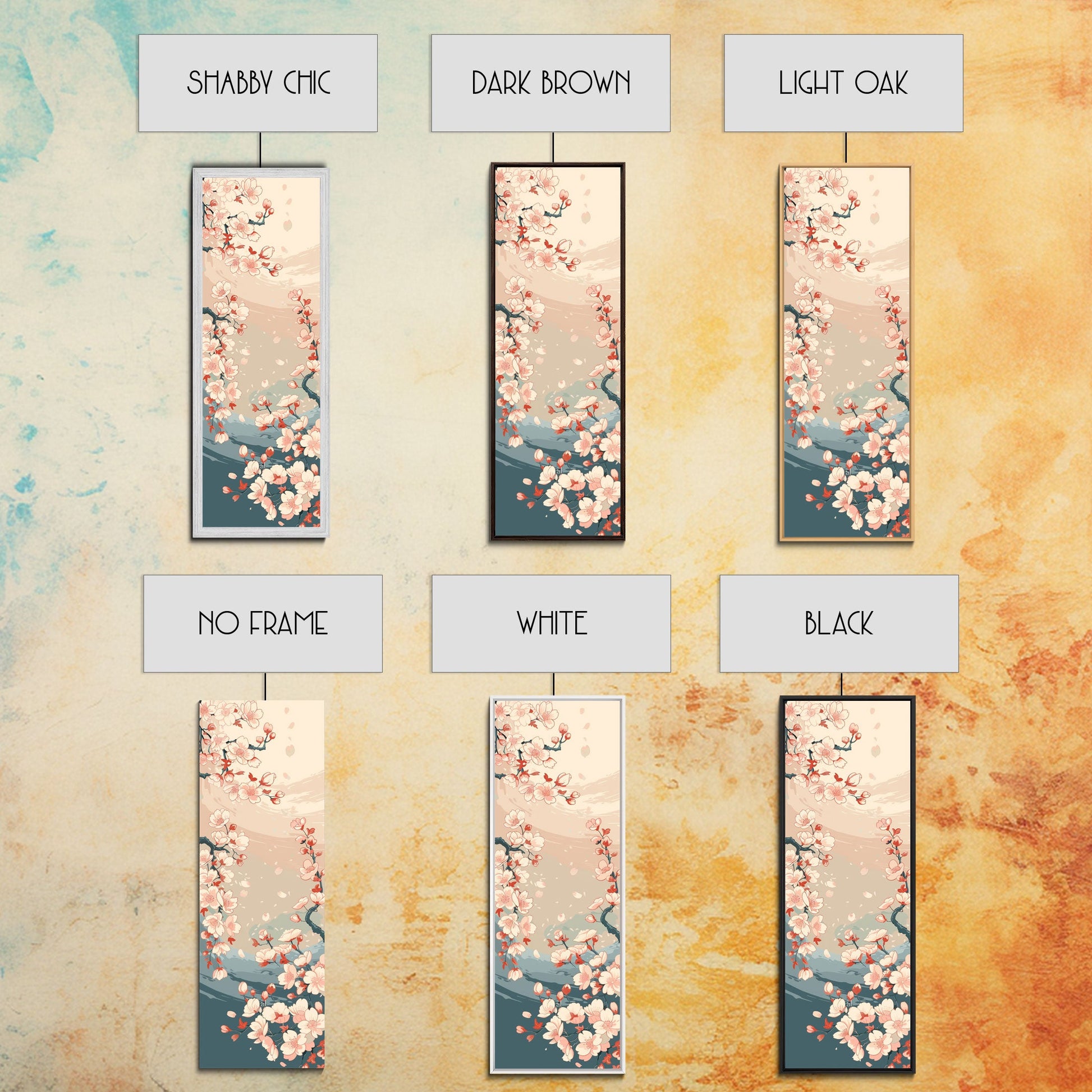 Cherry Blossom Branches Pale Background Japanese Style Tall Skinny Framed Canvas Print Wall Art