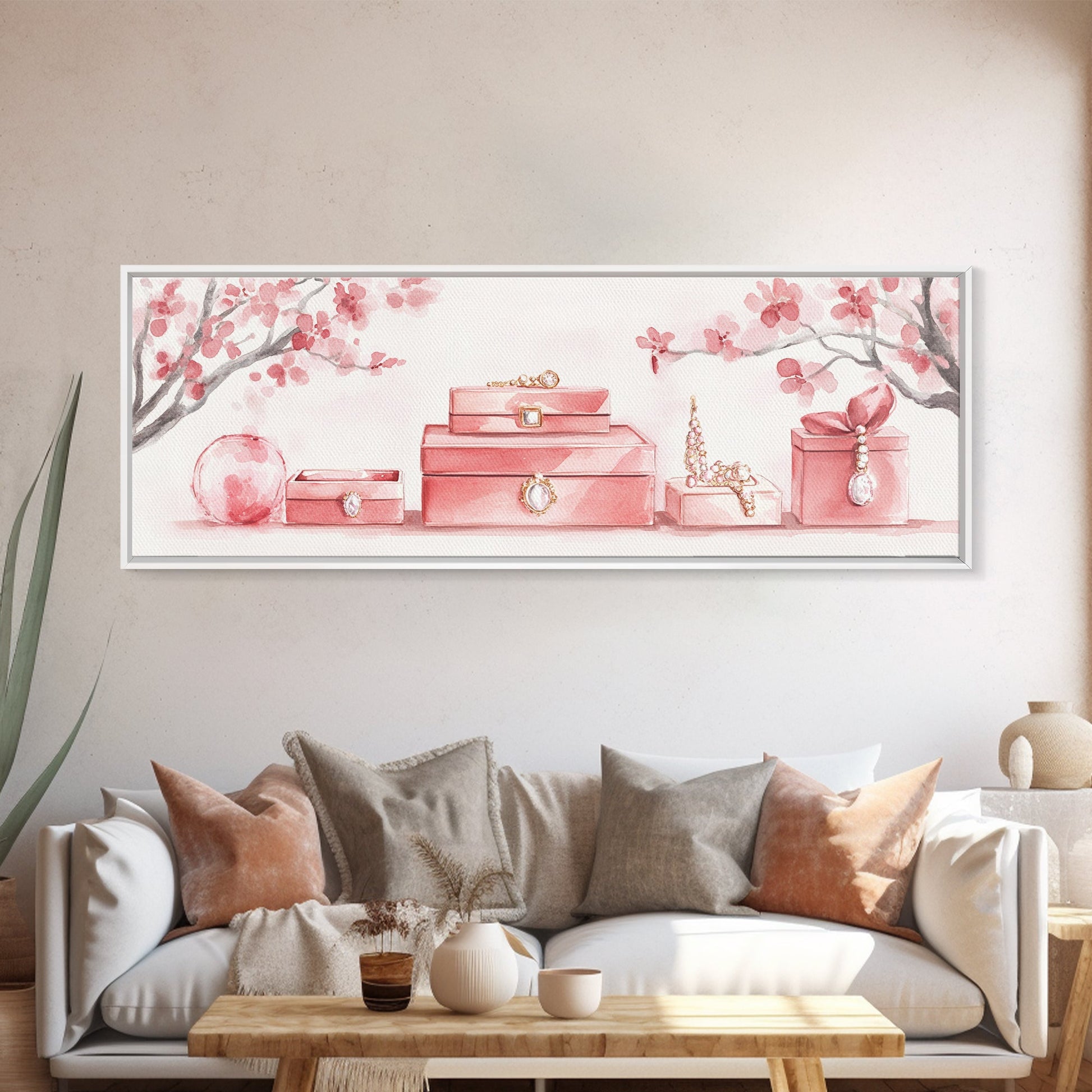 Cherry Blossom Canvas Print, Botanical Framed Canvas Art, Light Pink Wall Art, Bedroom or Guest Room Art, Feminine Nature-Inspired Decor