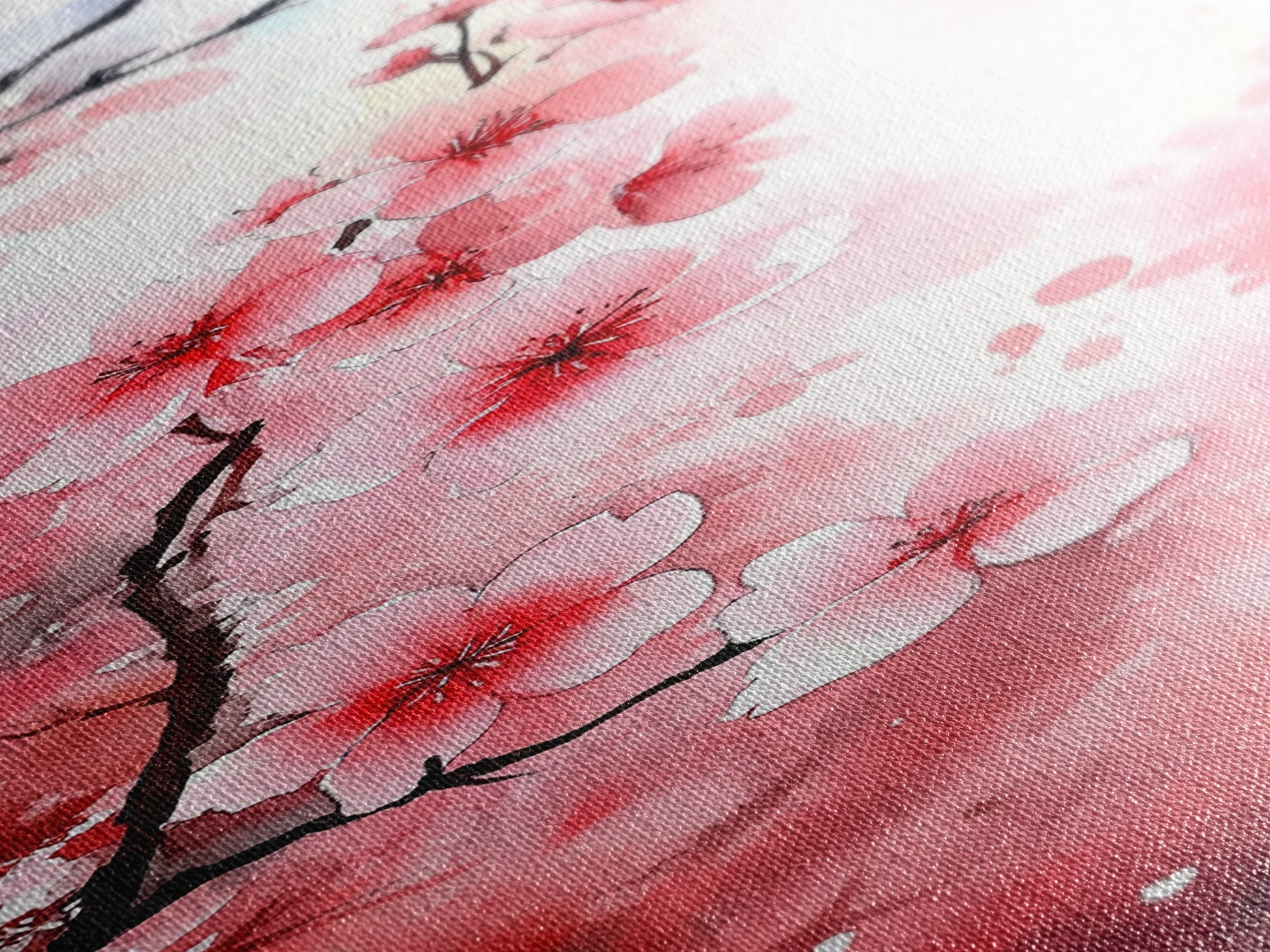 Cherry Blossom Framed Canvas Print, Japanese Inspired Wall Art, Pink Botanical Artwork, Minimalist Living Room Decor, Gift Idea